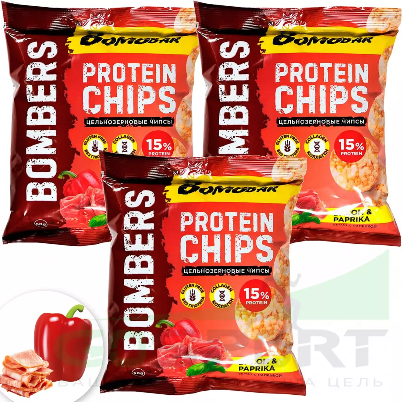 Protein Chips 3 x 50 г, Бекон с паприкой
