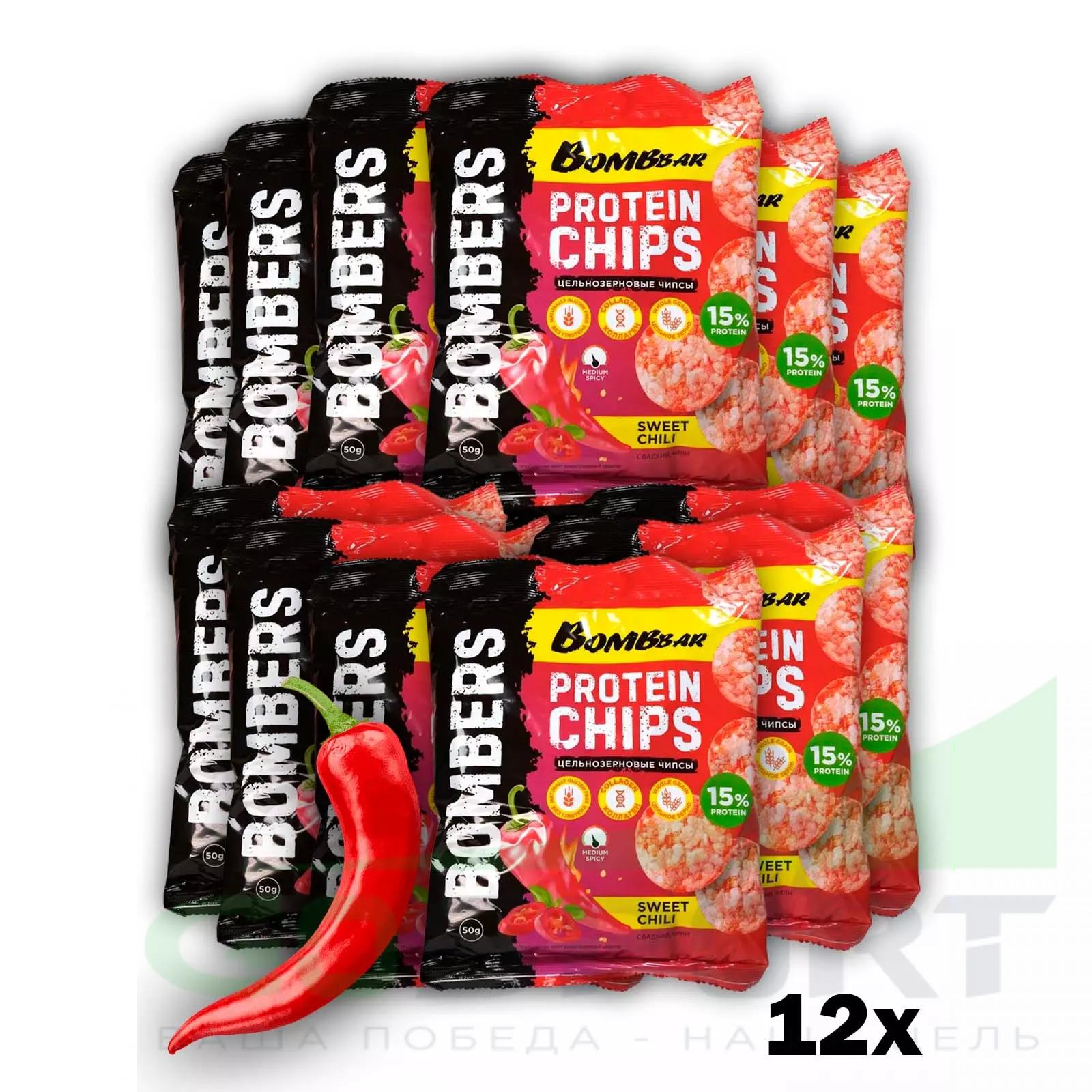 Protein Chips 12 x 50 г, Сладкий чили