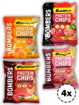 - Чипсы с низкой калорийностью (в чипсах Bombbar на порцию пачки выходит всего 152 калории: белки 8 г, жиры 2 г, углеводы 27 г)