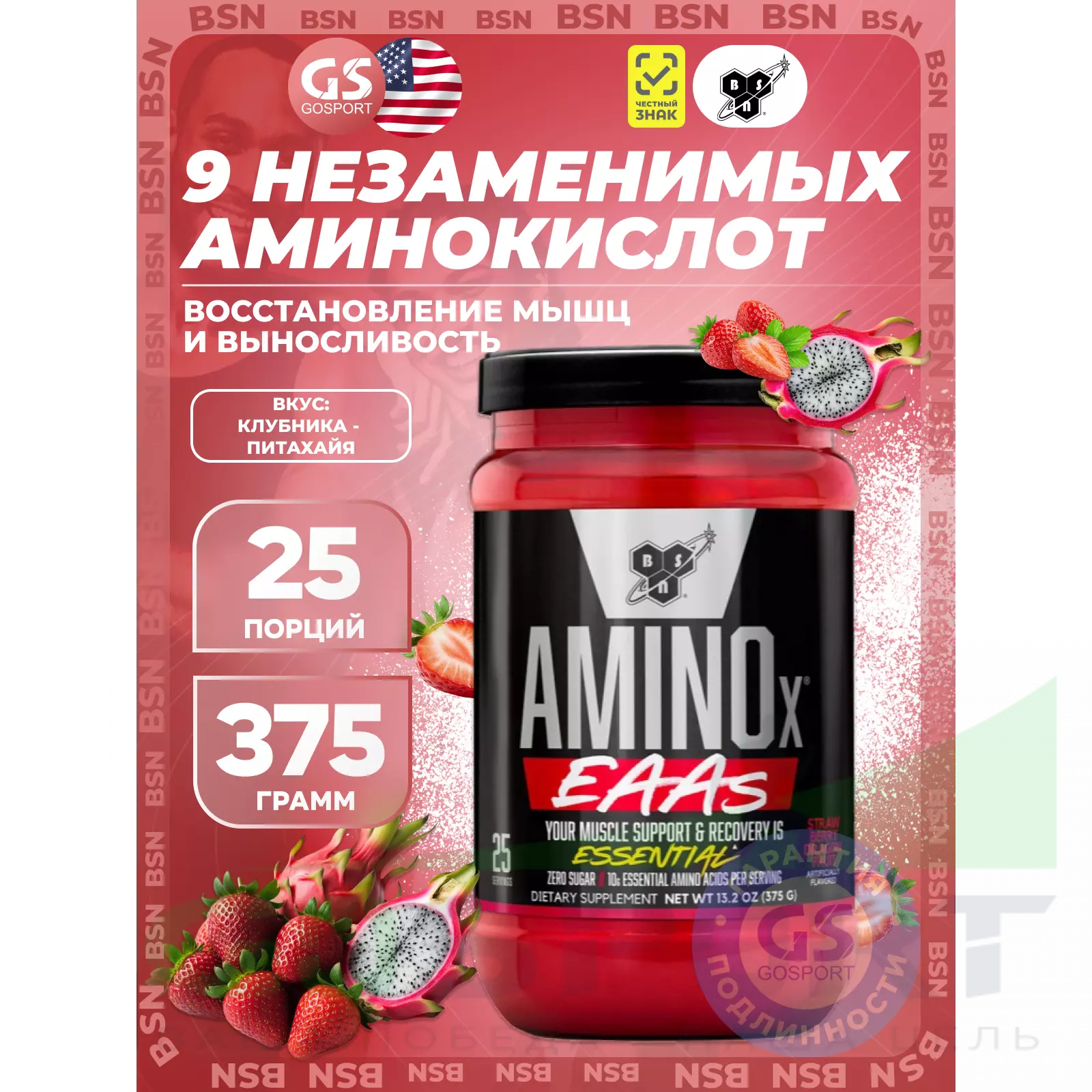 Каждая порция в AMINOX EAAS от BSN содержит в сумме 10 г всех девяти EAA, 5 г из трех важнейших BCAA, а остальные 5 г из оставшихся шести EAA. Эти EAA являются основной особенностью продукта, без дополнительного таурина или цитруллина, как в текущей и обычной версии AminoX.