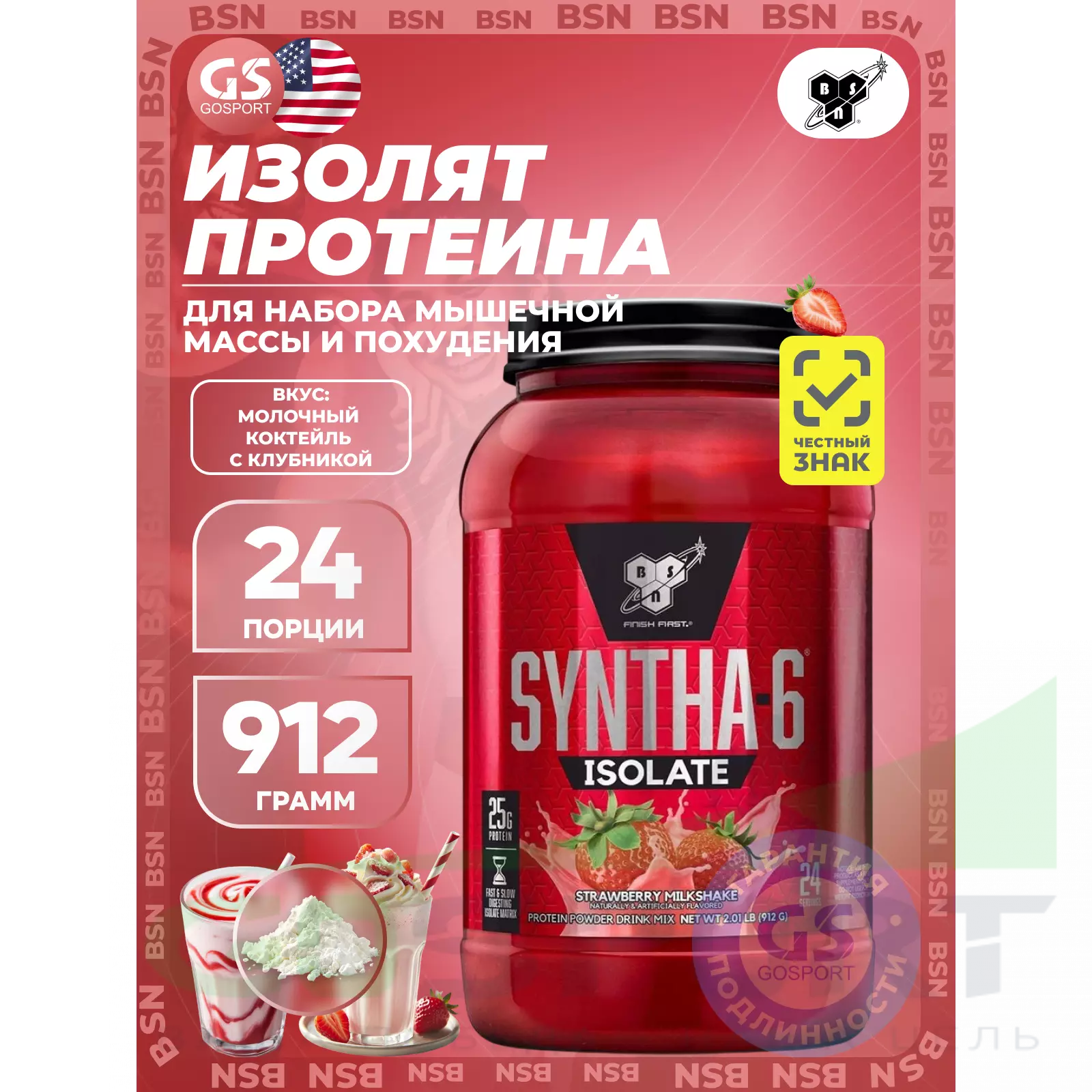 Протеиновый коктейль Syntha-6 Isolate обеспечивает двойную поддержку. Во-первых, благодаря уникальным свойствам сыворотки, мы обеспечиваем себя быстрой загрузкой ключевыми аминокислотами для поддержания мышечного роста и здорового иммунитета. Во-вторых, это пост-тренировочная восстановительная поддержка от медленного высвобождения аминокислот, которая обеспечивается казеином. И поскольку данный протеин вышел под маркой BSN, вы можете быть уверены в богатом и насыщенном вкусе данного продукта, не имеющем аналогов, даже, несмотря на то, что в нем на половину меньше жиров и углеводов по сравнению с классическим Syntha-6.