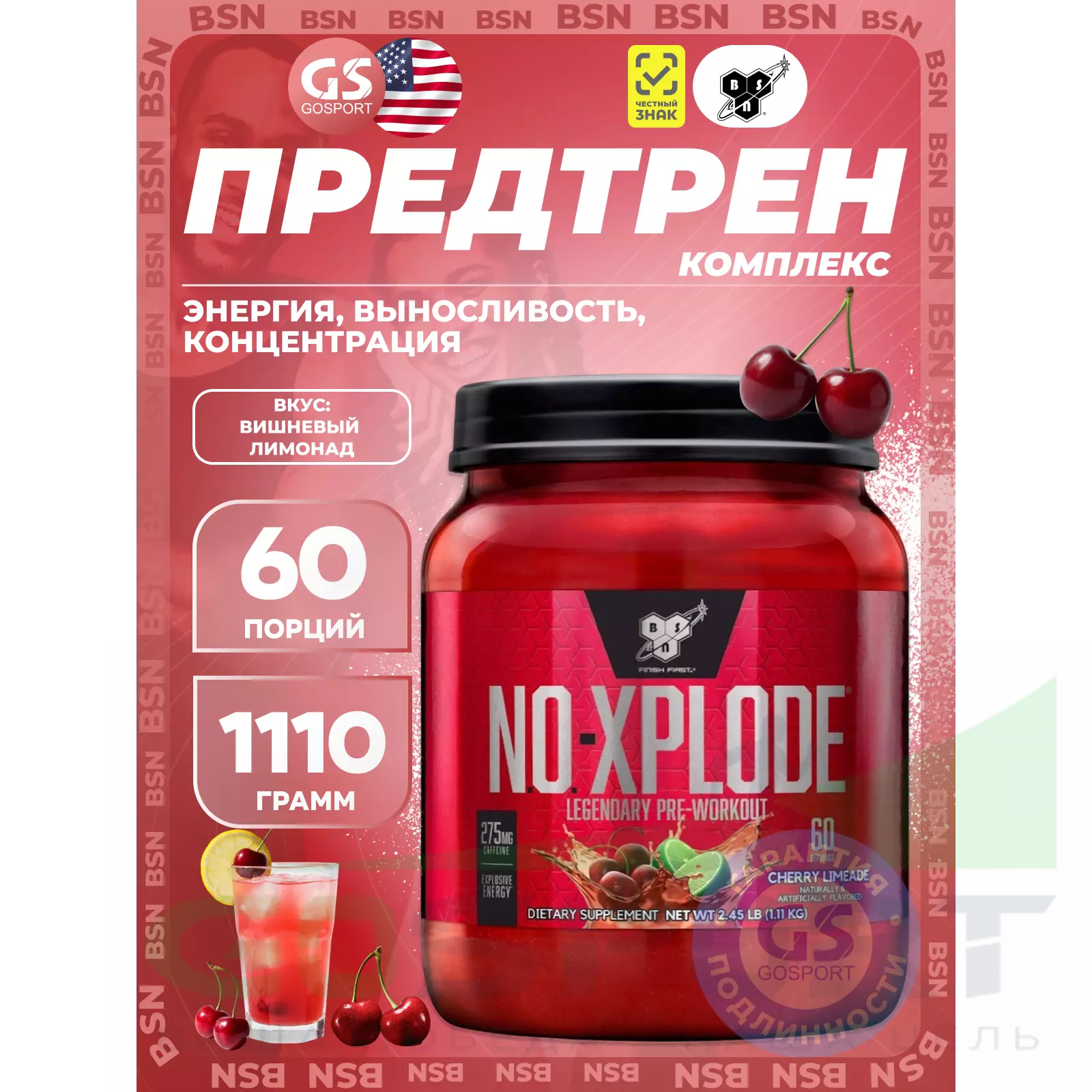 Для проведения наиболее эффективной тренировки необходимы, как ментальная, так и физическая энергия. Сосредоточенность нужна для контроля над энергией и управления сильной мышечно-мозговой связью. Эта мышечно-мозговая связь помогает достичь Вам большей интенсивности на тренировках и дает толчок организму к преодолению старых пределов. В BSN мы знаем, что предтренировочный комплекс должен обладать всеми этими возможностями. Мы разработали NO-XPLODE, полноценный предтренировочный комплекс, для помощи в получении большей энергии и выпосливости, поддержки мозгового центра и мышечной силы, а также чтобы дать вам непревзойденную интенсивность для достижения атлетами любого уровня максимальной работоспособности на тренировках.