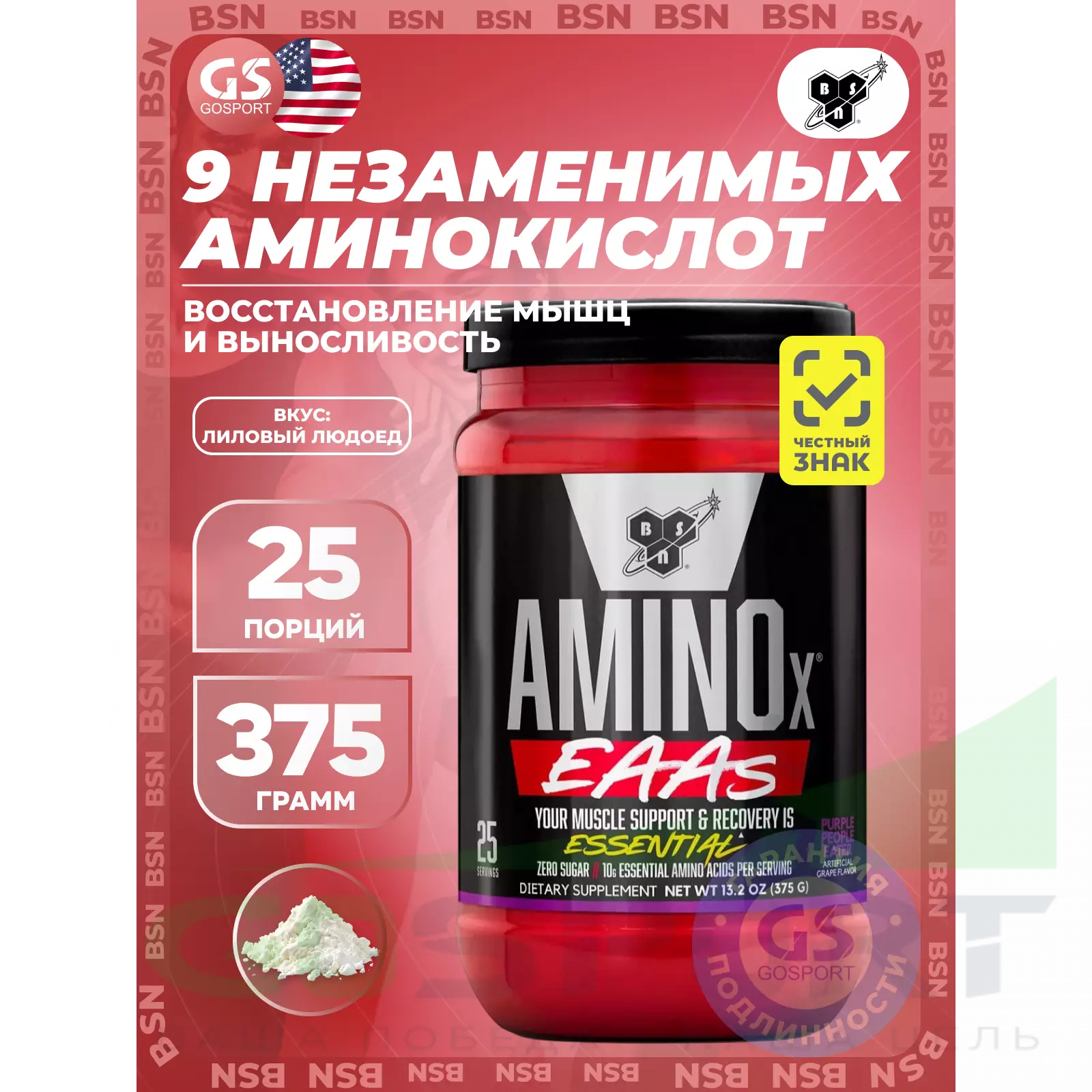Синтез мышечного белка – это то, к чему стремятся все, а для синтеза белка требуются необходимые аминокислоты, которые ваше тело не производит самостоятельно. Синтез мышечного белка разблокируется, когда у вас есть все 9 незаменимых аминокислот. Вот почему аккредитованные ученые из исследовательской группы BSN подобрали AMINOX EAAS с промышленной дозировкой 10 г всех 9 EAA, что дает вашим мышцам еще больше того, что им нужно.