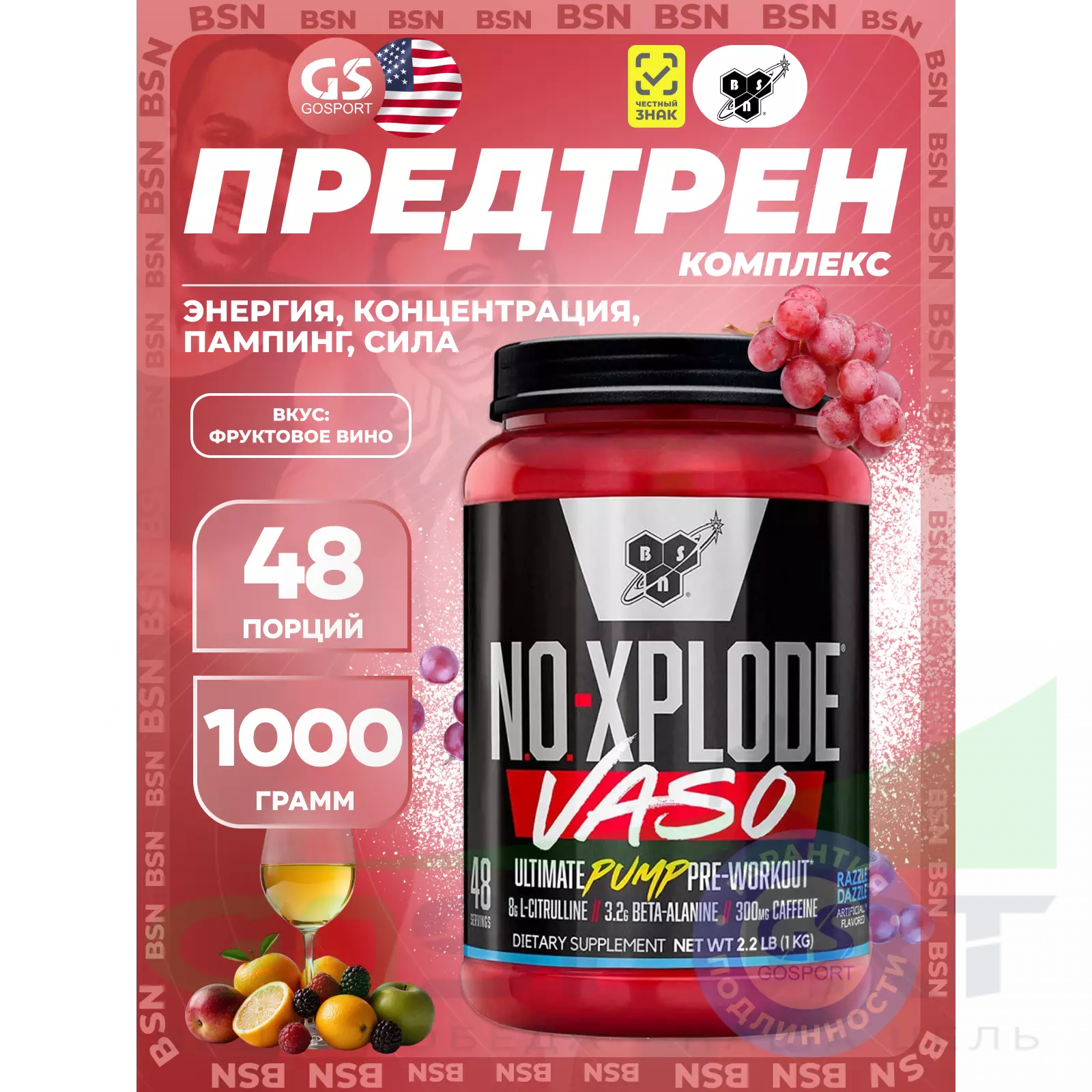 NO-Xplode Vaso Pre Workout от американского производителя BSN – эффективный предтреник на основе уникальной инновационной формулы в форме порошка с натуральным фруктовым вкусом. Теперь — еще больше силы и выносливости, вдохновляющих пампинга и результатов.