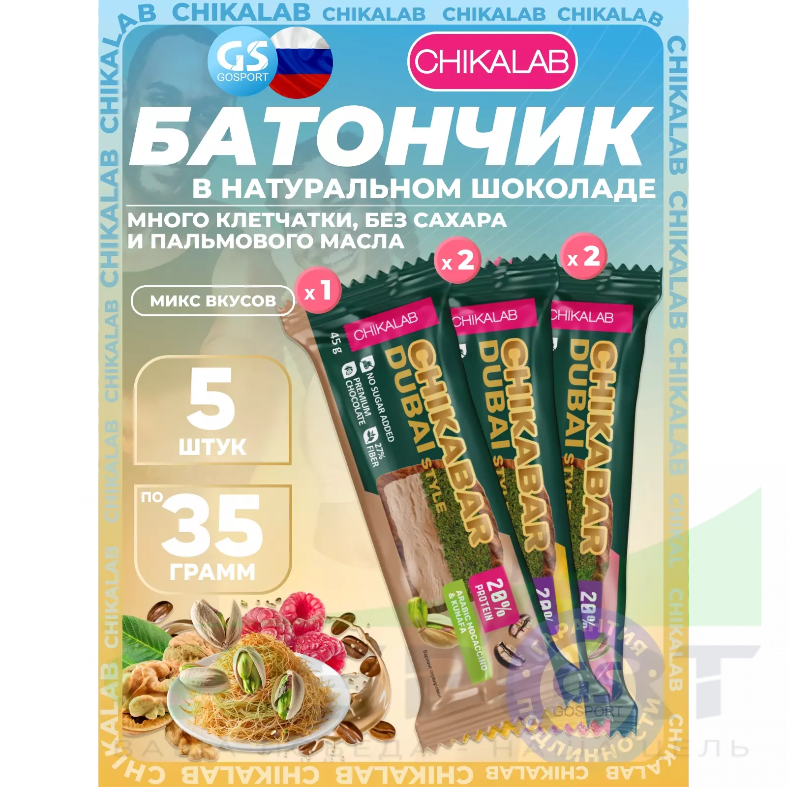 Chikalab Батончик глазированный Chikabar Dubai 5 x 45 г, Микс 1 — Полезный и питательный перекус
