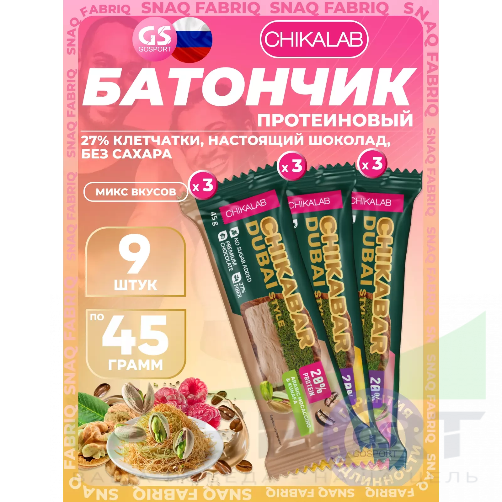 Chikalab Батончик глазированный Chikabar Dubai 9 x 45 г, Микс 1 — Полезный и питательный перекус