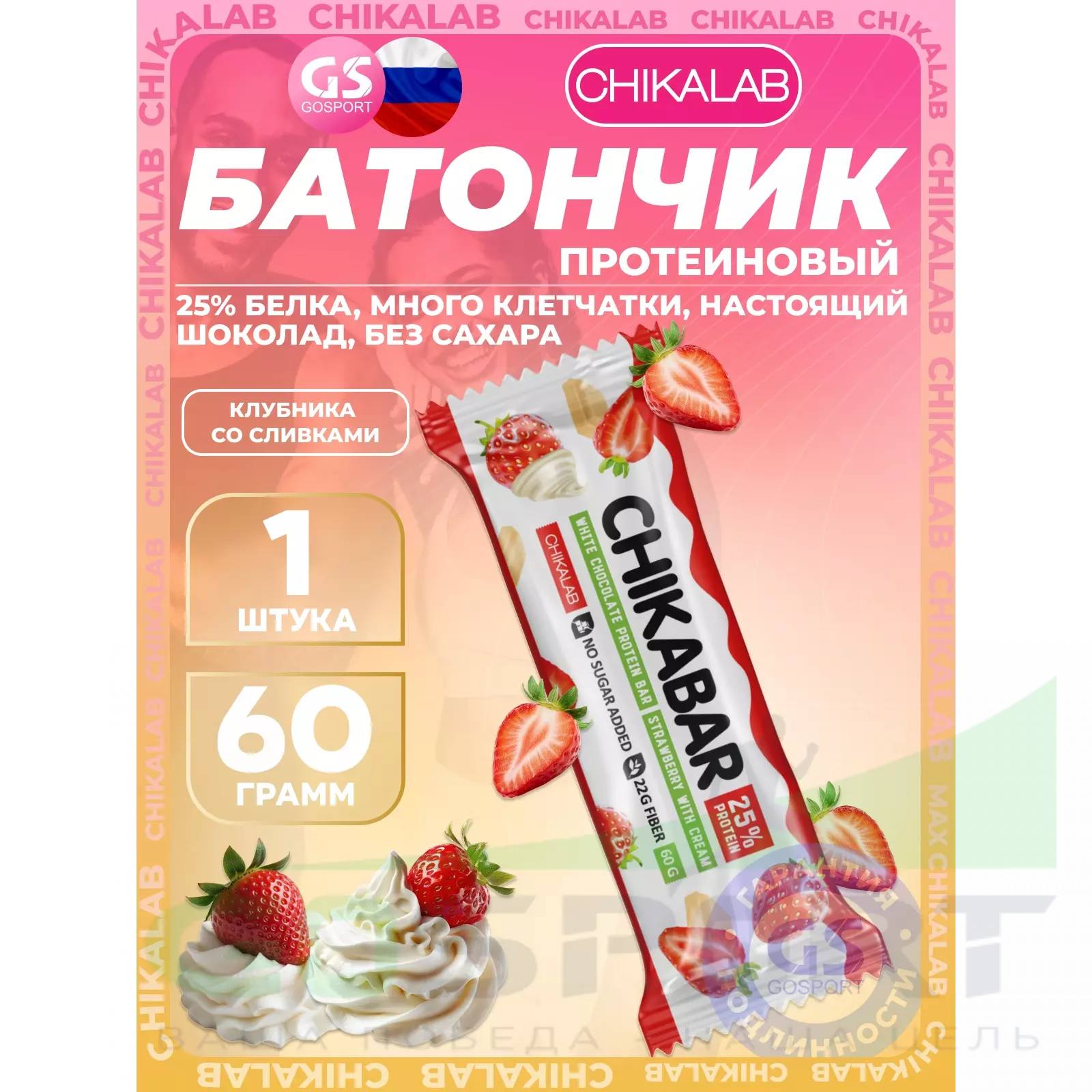Chikalab Chikabar 60 г, Клубника со сливками — Полезный перекус и поддержка мышц
