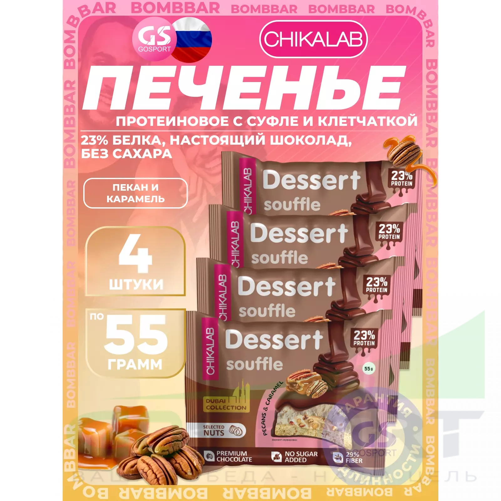 Chikalab Печенье глазированное 4 x 55 г, Пекан и карамель — Полезный и питательный перекус