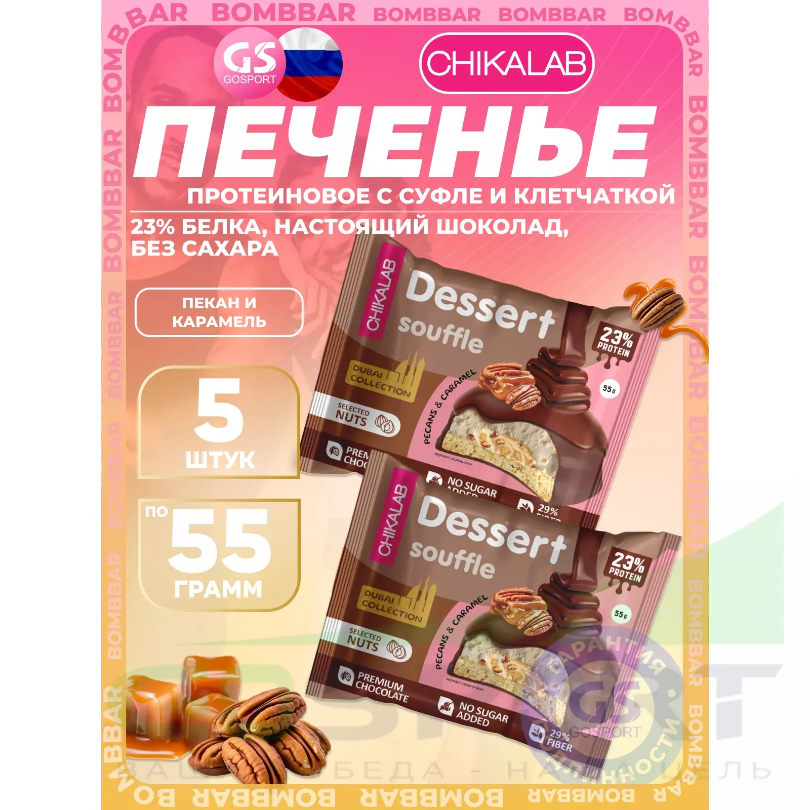 Chikalab Печенье глазированное 5 x 55 г, Пекан и карамель — Полезный и питательный перекус