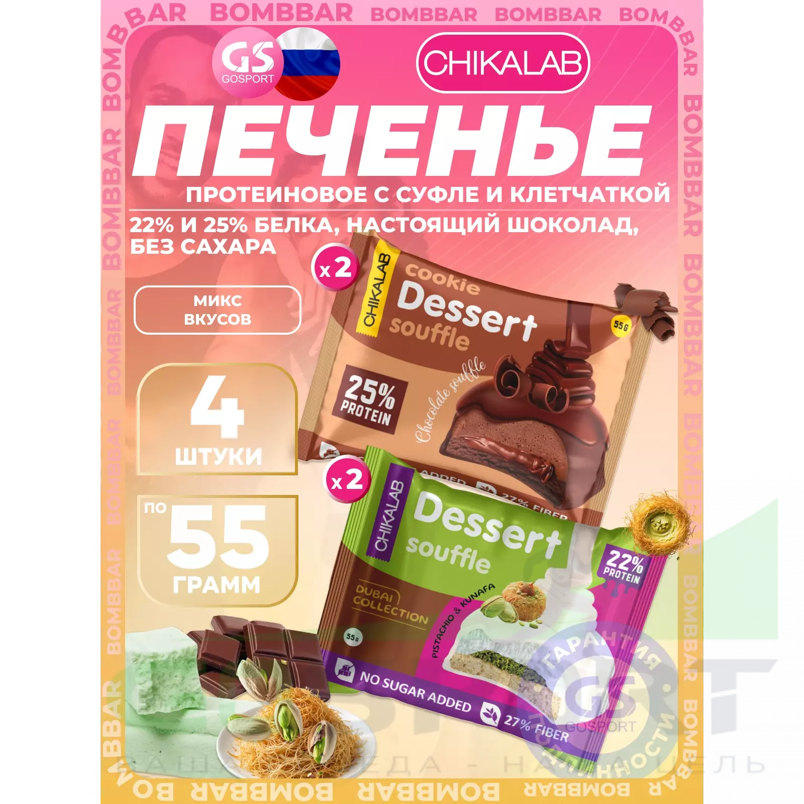 Chikalab Печенье глазированное 4 x 55 г, Микс — Полезный и питательный перекус