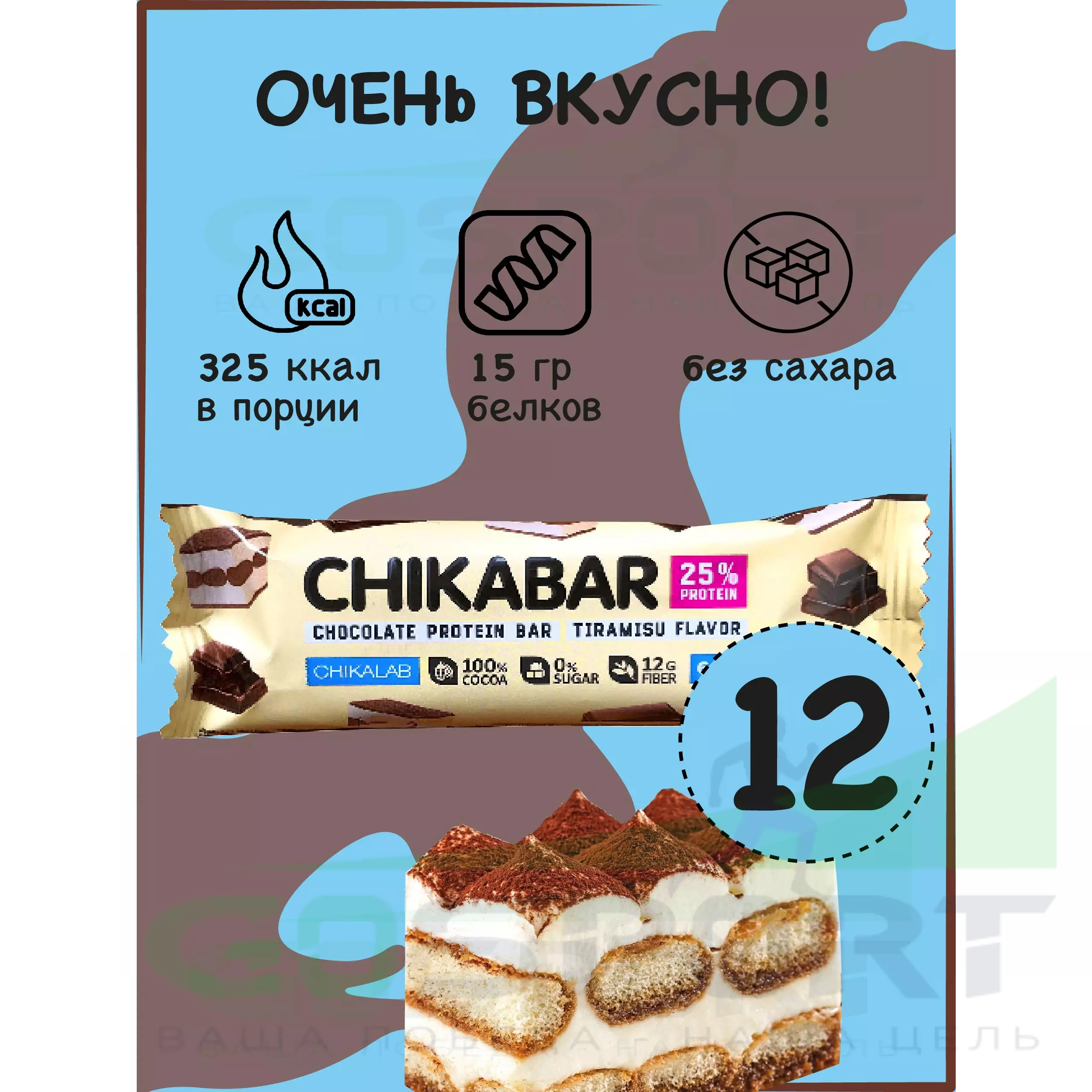 Chikabar 12 батончика x 60 г, Тирамису с молочной начинкой