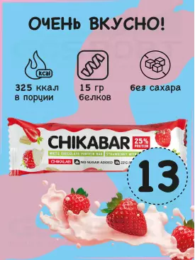 И начинка, и молочный шоколад содержат только натуральные ароматизаторы и подсластители. Благодаря этому Chikabar порадует вас пользой, вкусом и умеренной сладостью. И наконец — приятной ценой.