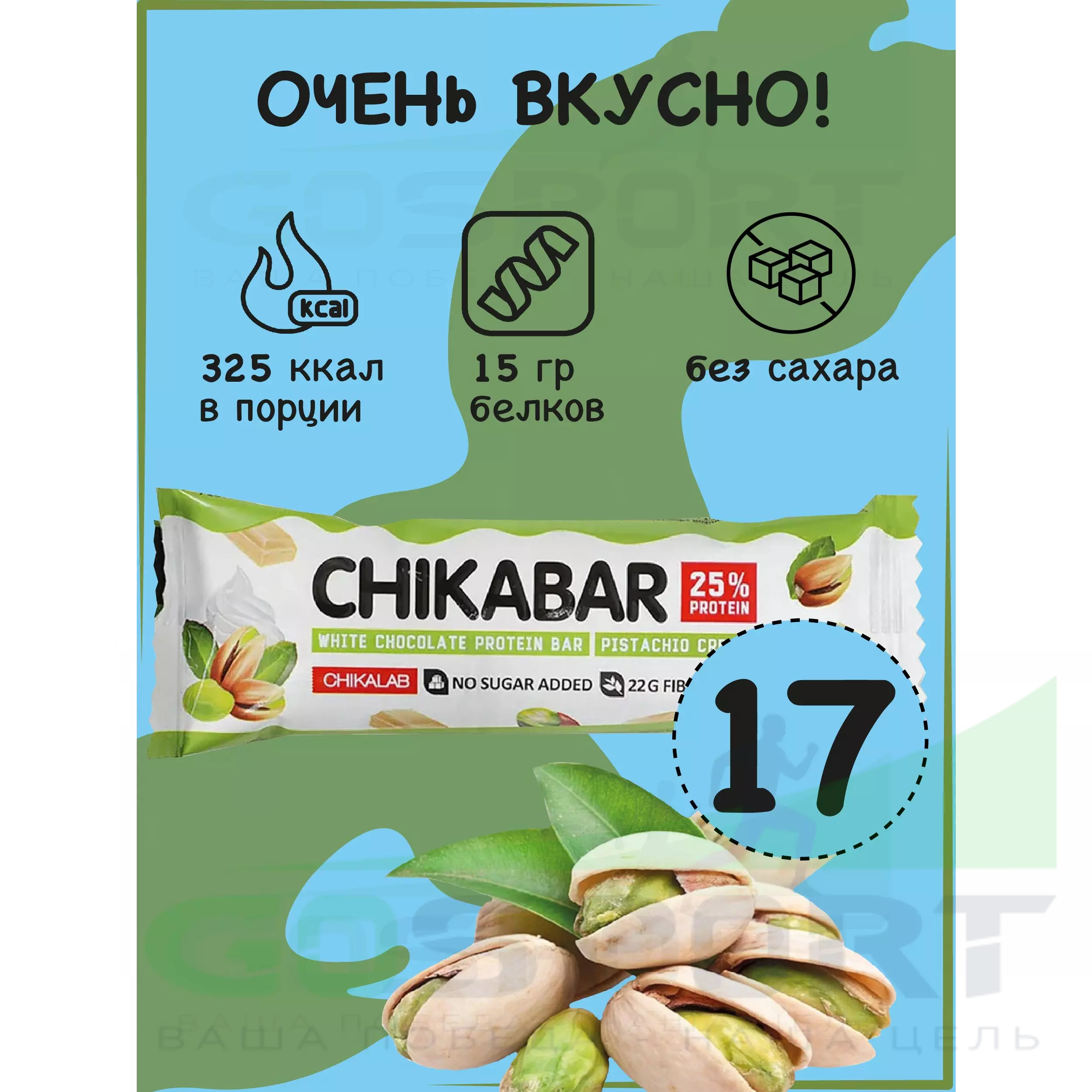Chikabar 17 батончика x 60 г, Фисташковый крем