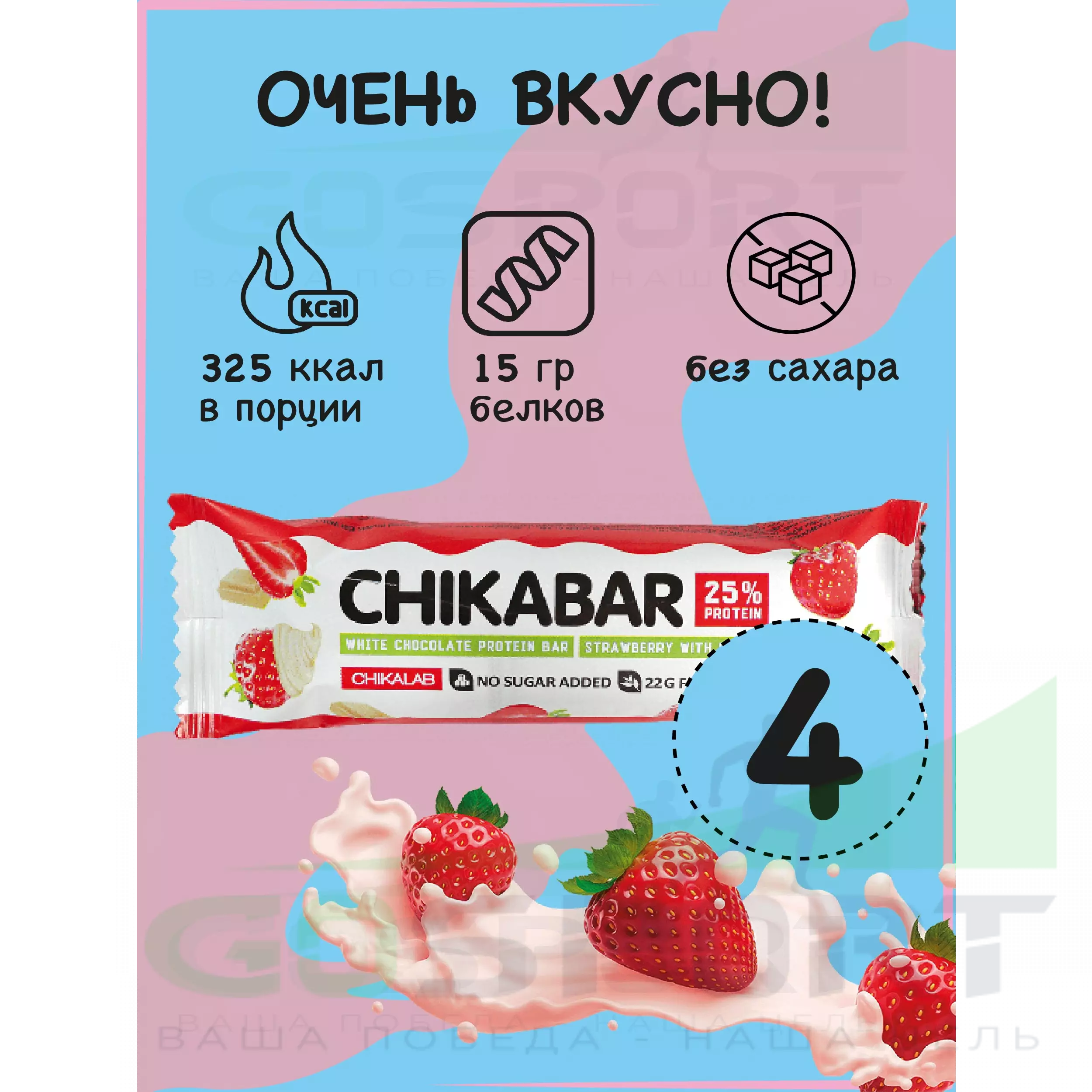 Chikabar 4 батончика x 60 г, Клубника со сливками