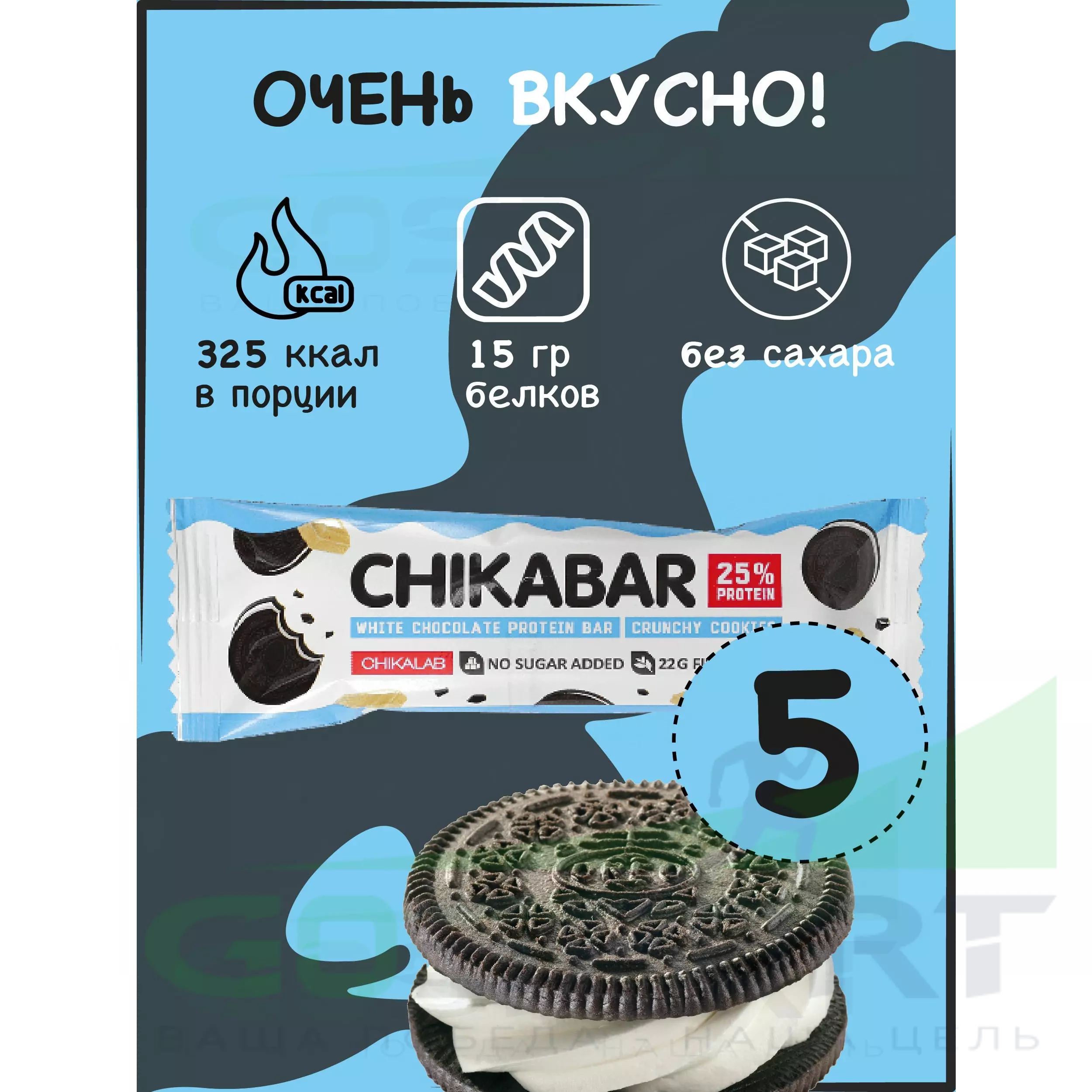 Протеиновый батончик Chikalab Chikabar 5 x 60 г, Печенье с кремом Протеиновый батончик Chikalab Chikabar 5 x 60 г, Печенье с кремом Протеиновый батончик Chikalab Chikabar 5 x 60 г, Печенье с кремом