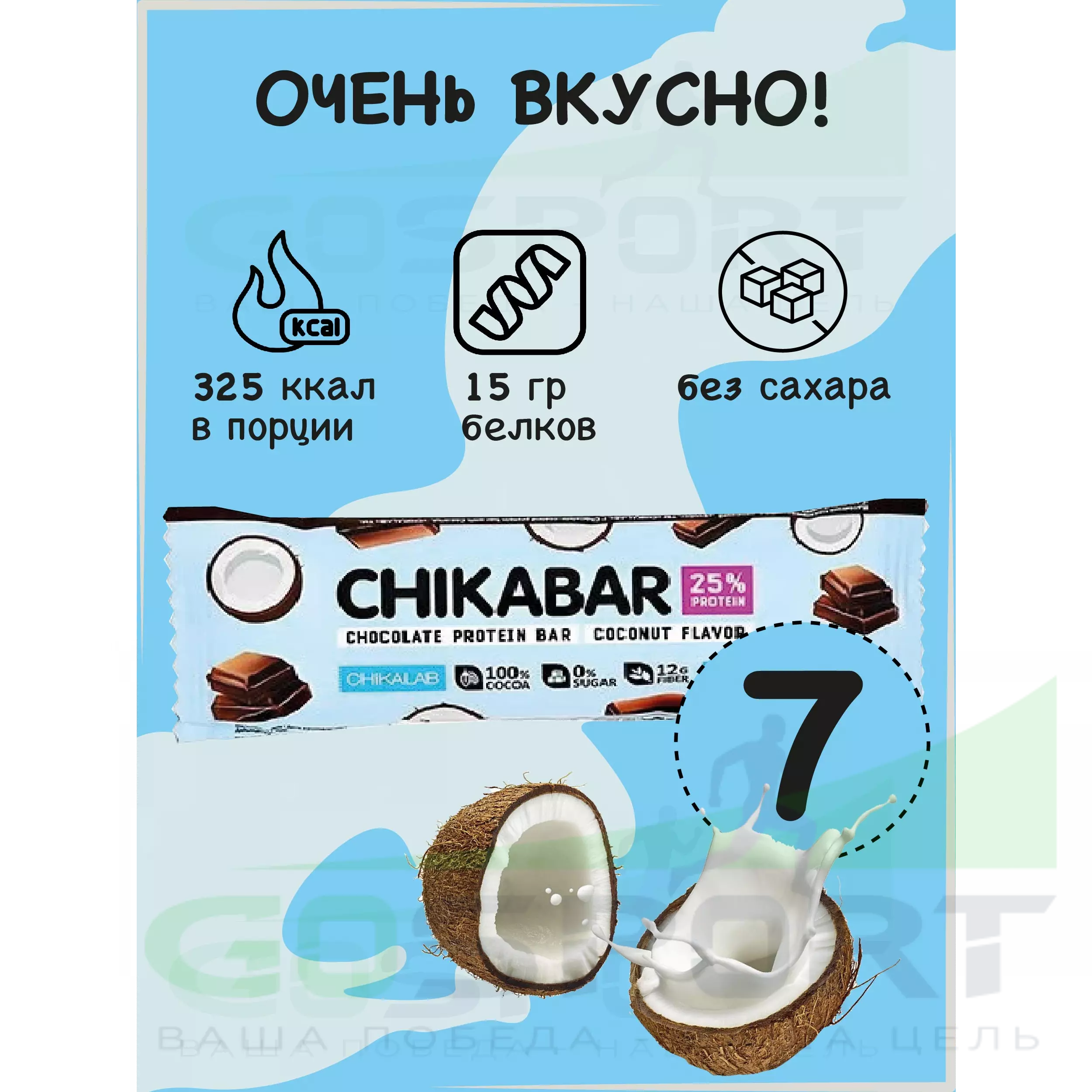 Chikabar 7 батончика x 60 г, Кокос