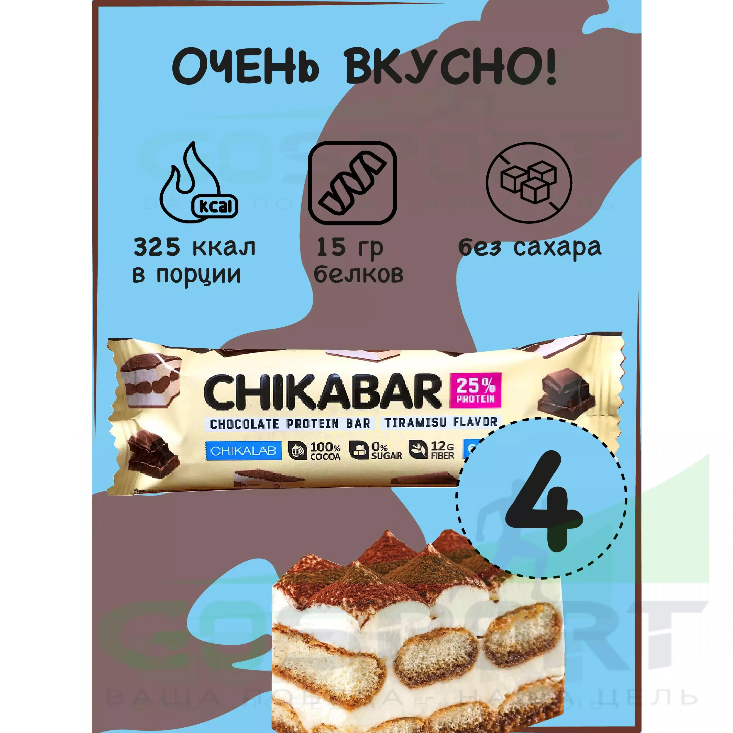 Chikabar 4 батончика x 60 г, Тирамису с молочной начинкой