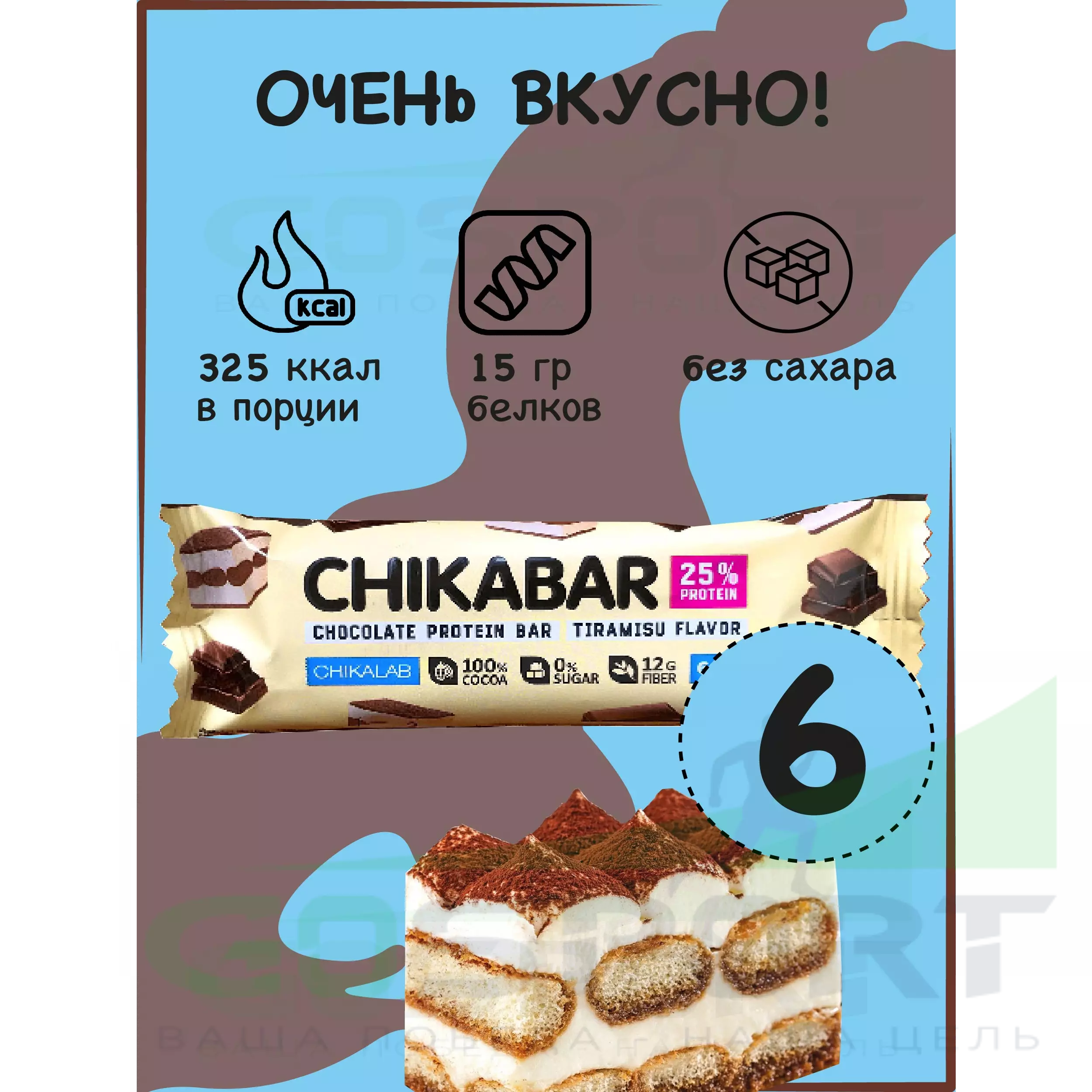 Chikabar 6 x 60 г, Тирамису с молочной начинкой