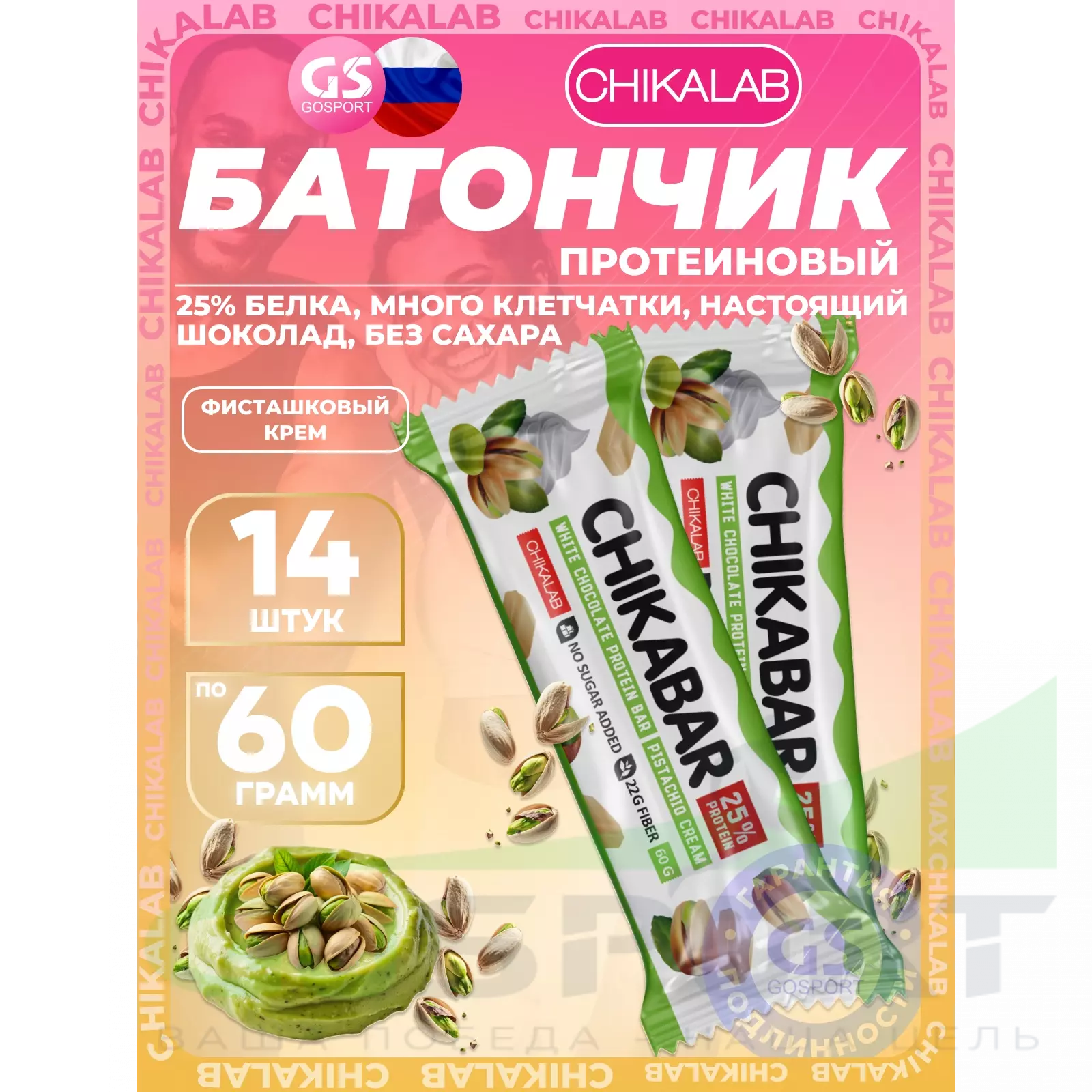 Chikalab Chikabar 14 x 60 г, Фисташковый крем — Полезный перекус и поддержка мышц