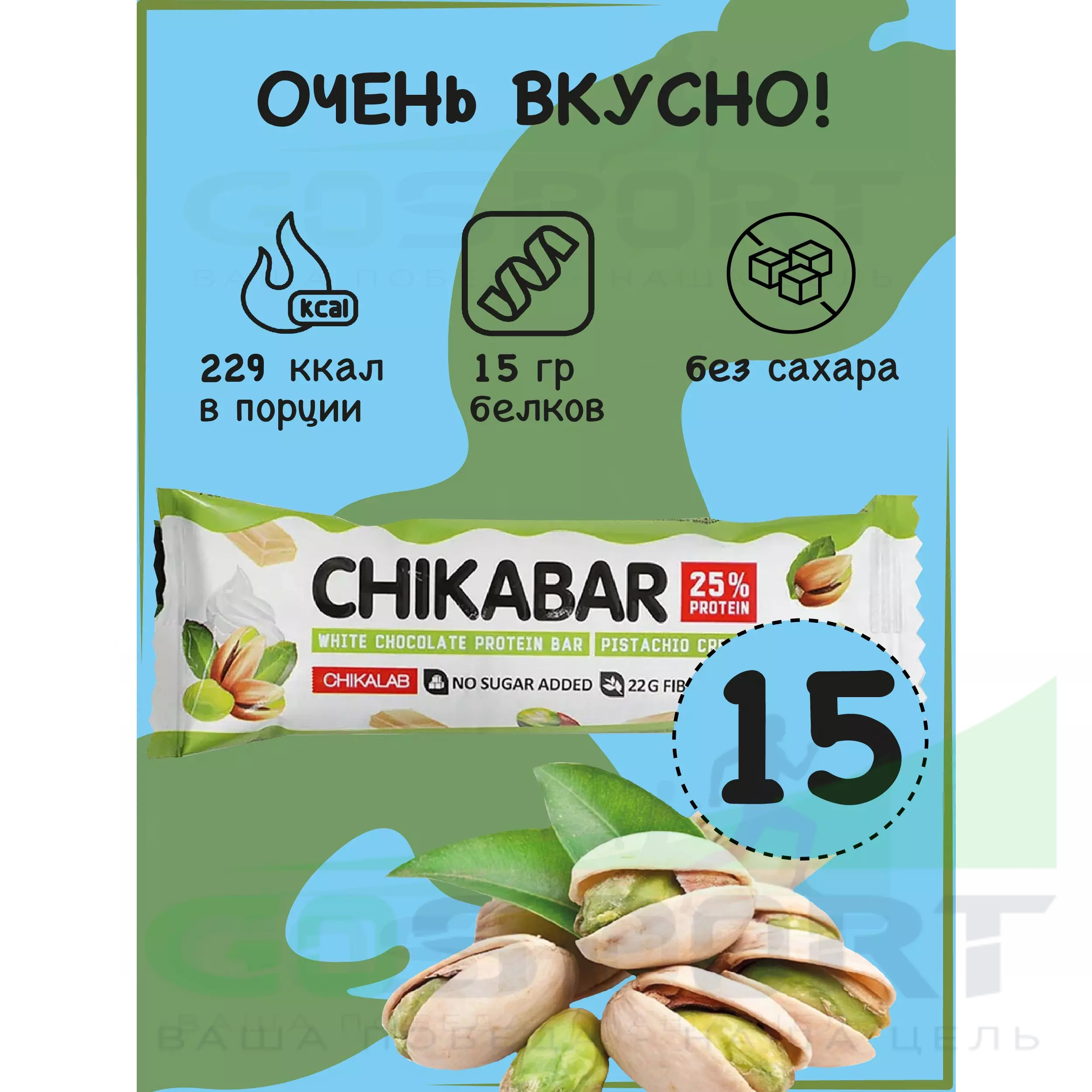 Chikabar 15 батончика x 60 г, Фисташковый крем