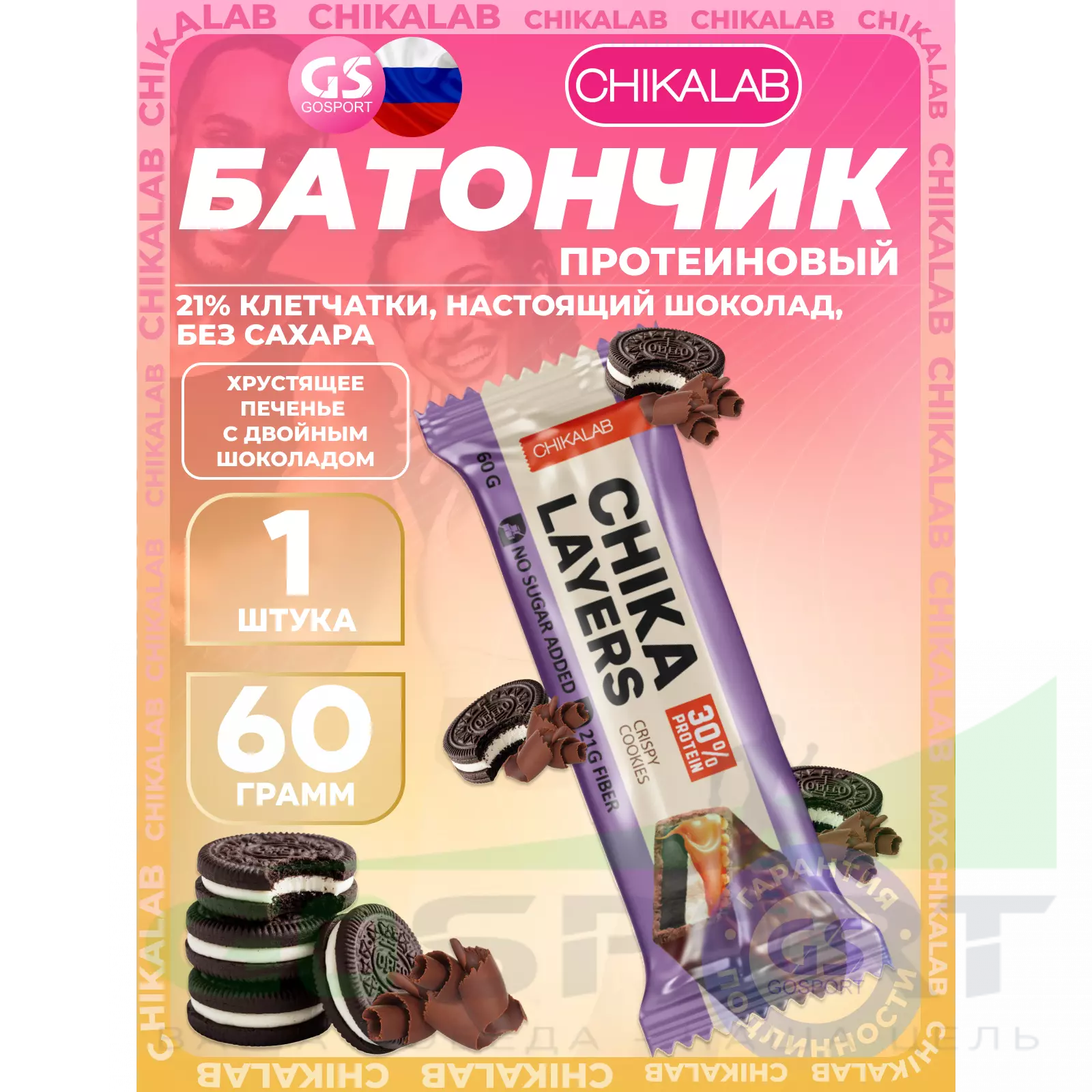 Chika Layers 60 г, Хрустящее печенье с двойным шоколадом