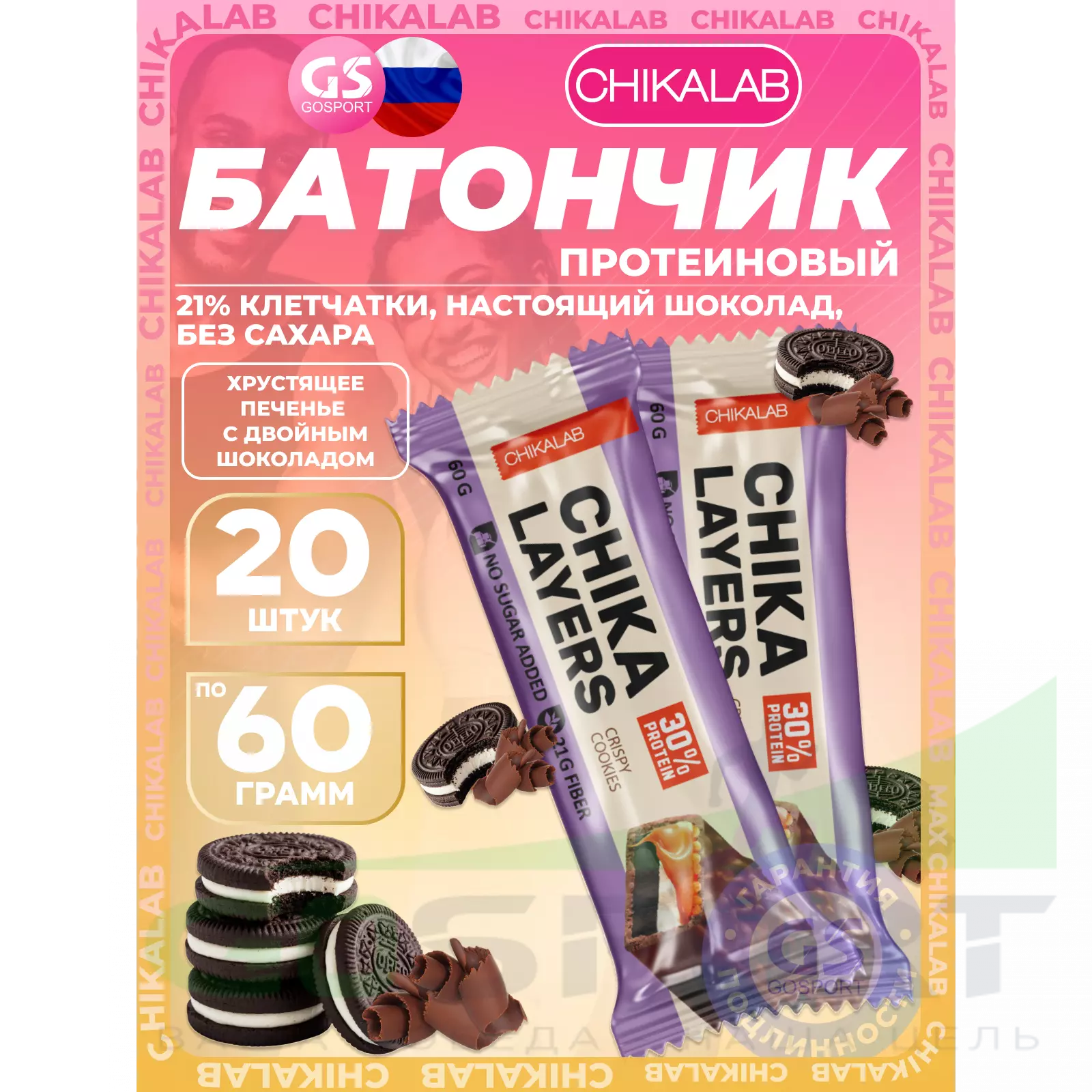 Chika Layers 20 x 60 г, Хрустящее печенье с двойным шоколадом