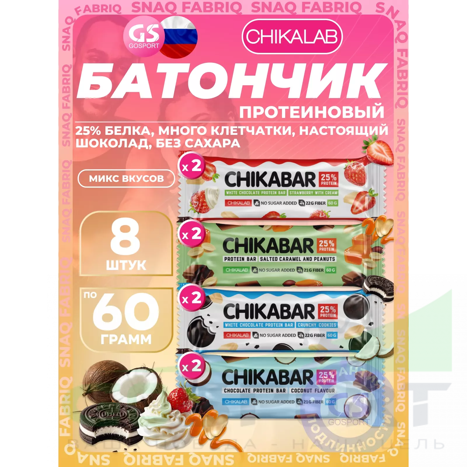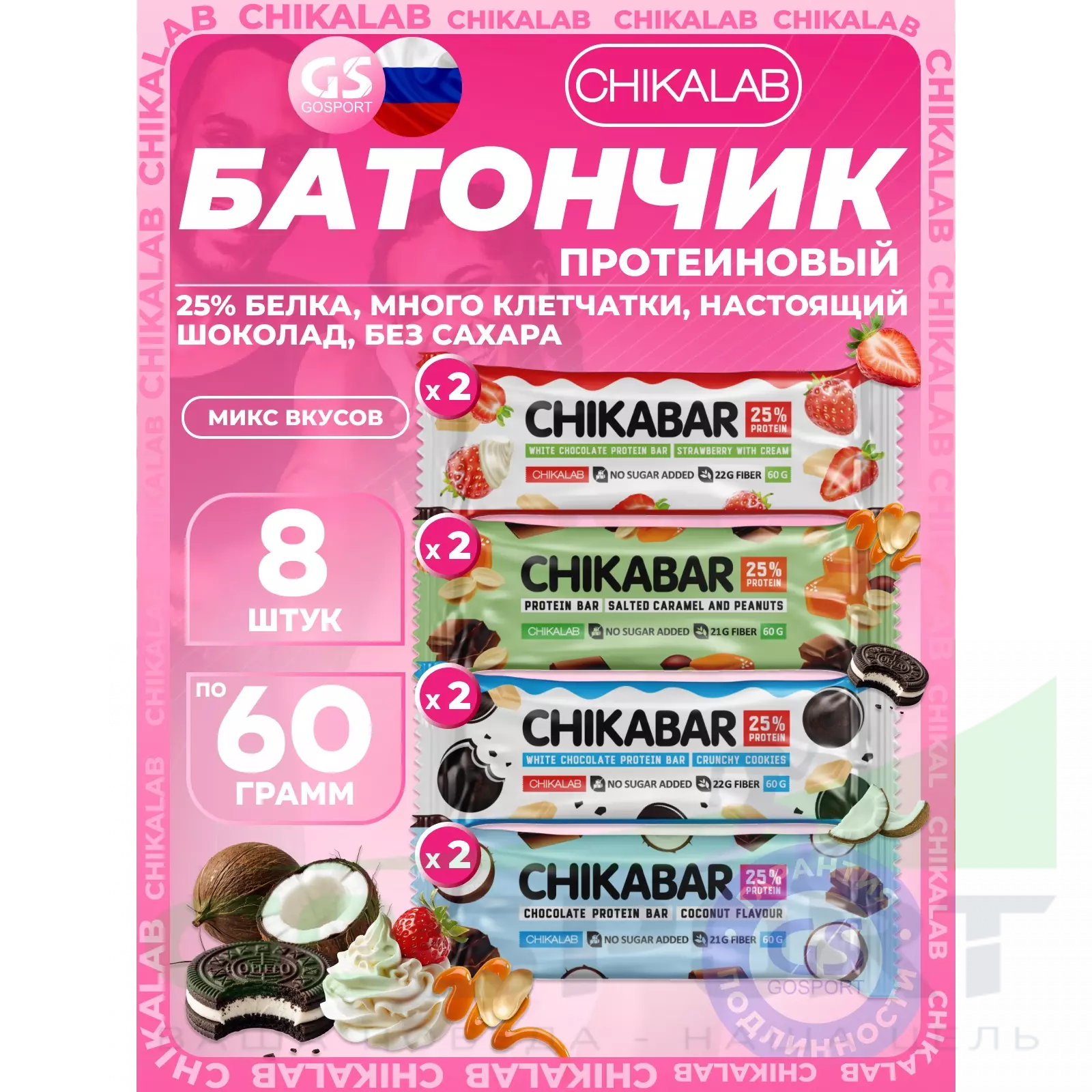 Chikalab Chikabar 8 x 60 г Ассорти, Микс 4 — Полезный перекус и поддержка мышц