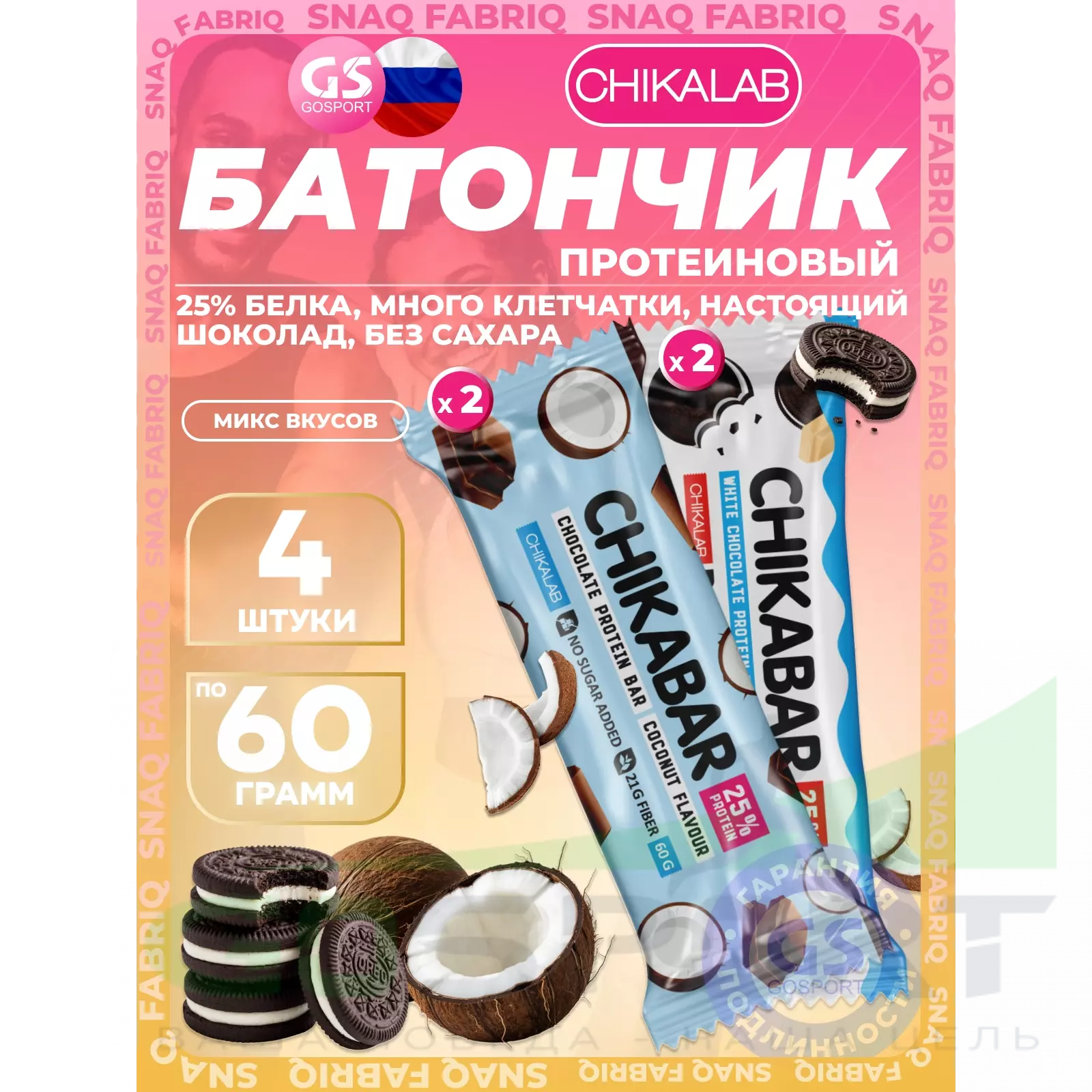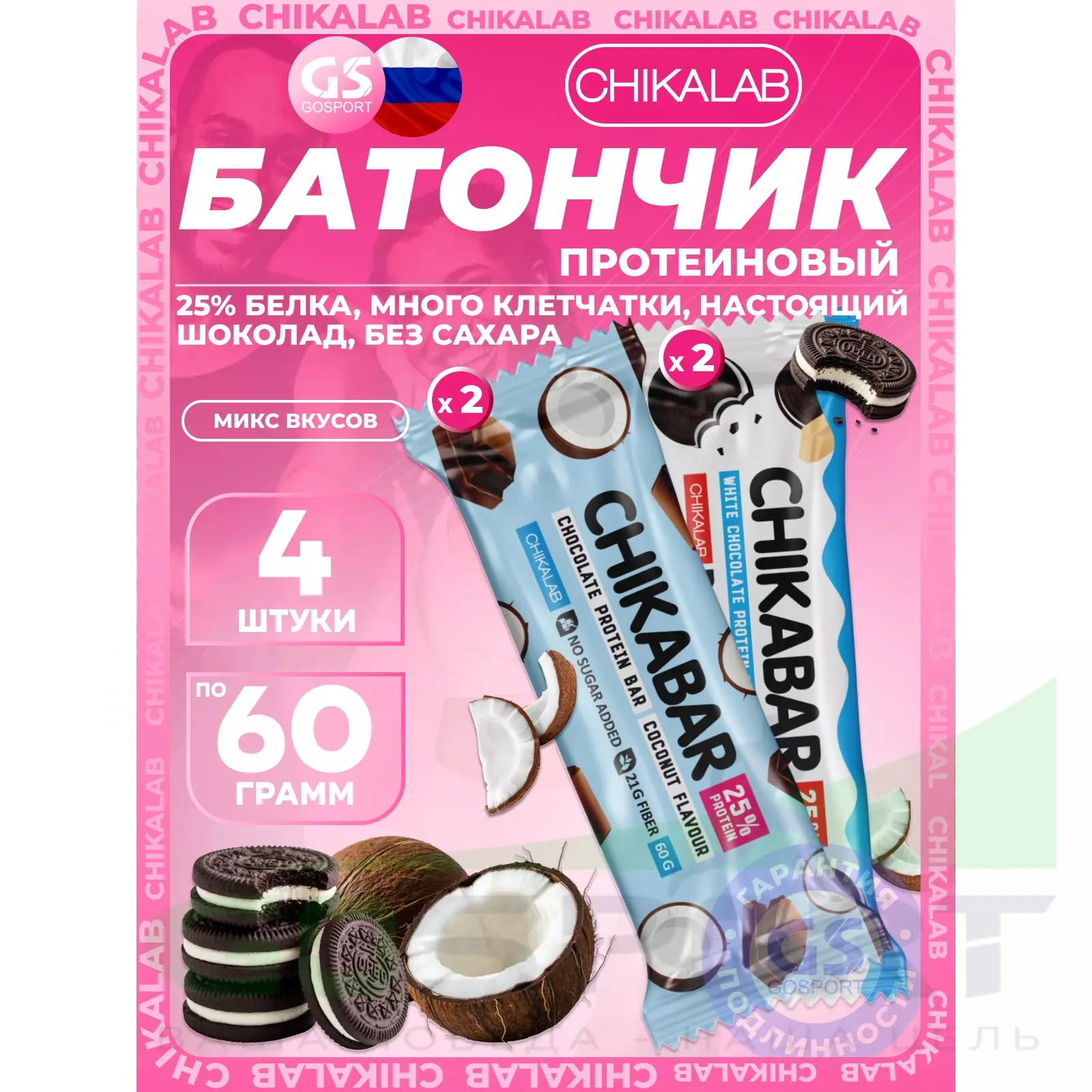 Chikalab Chikabar 4 x 60 г Ассорти, Микс 4 — Полезный перекус и поддержка мышц