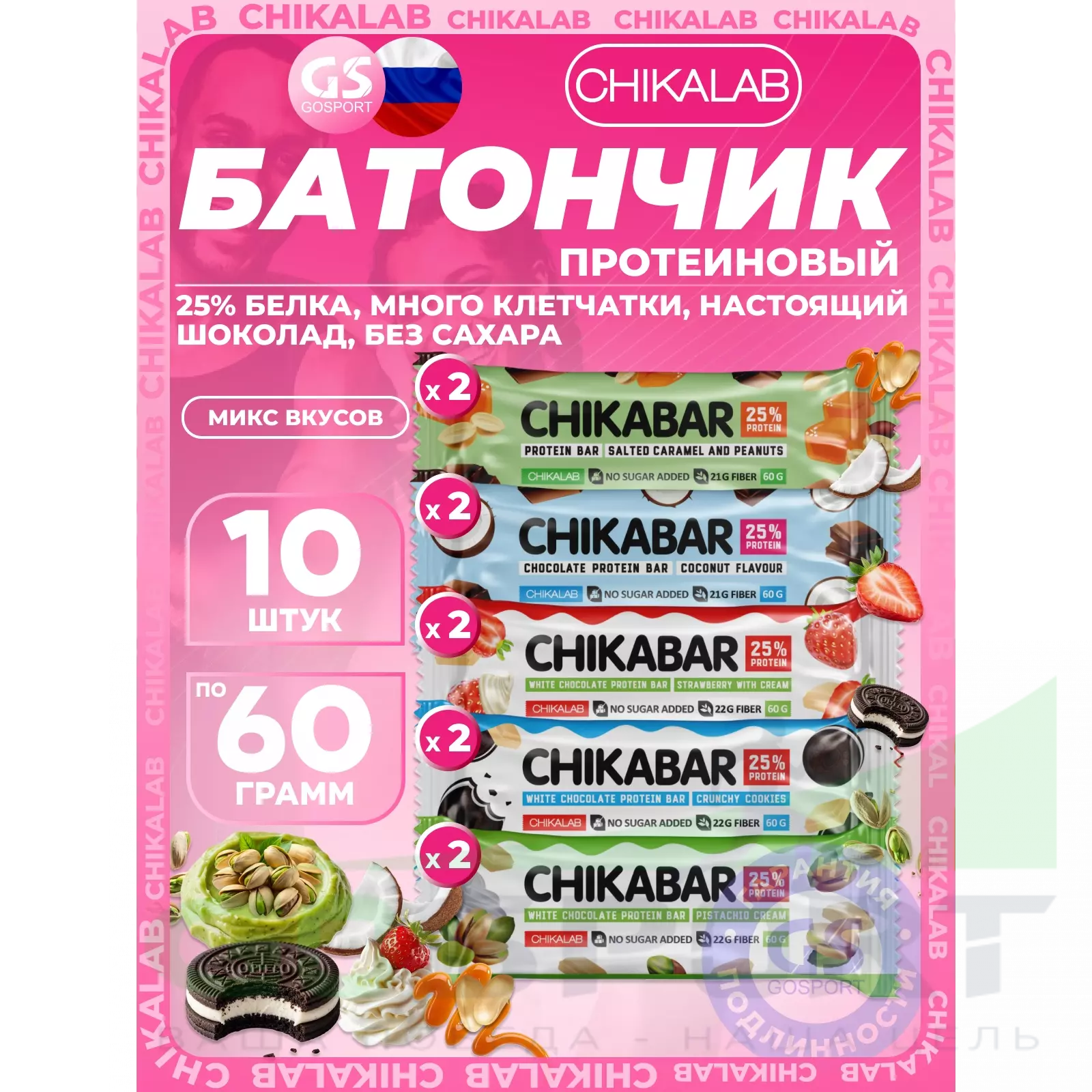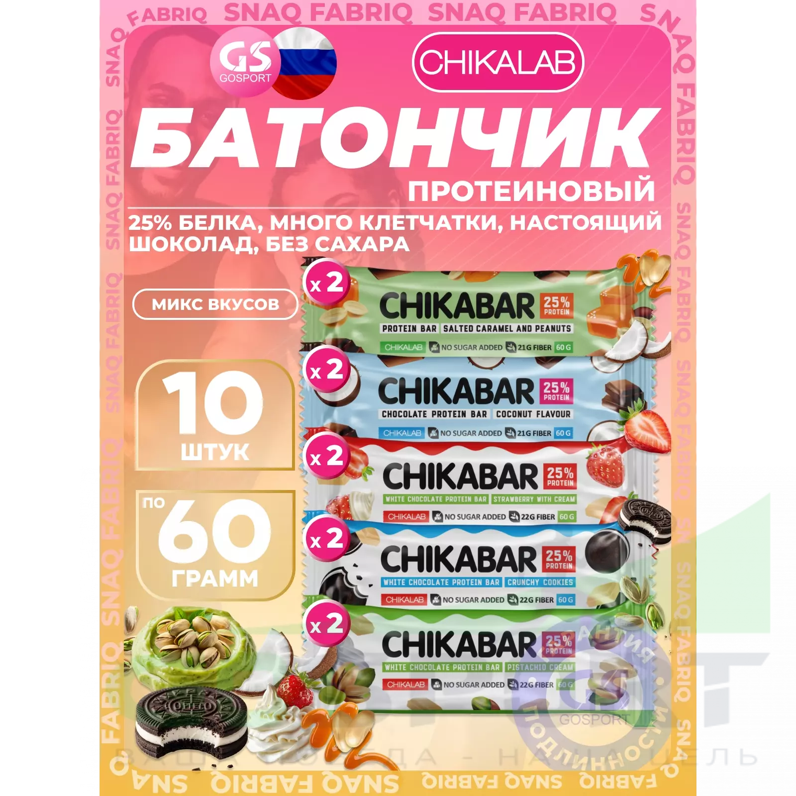Chikalab Chikabar 10 x 60 г Ассорти, Микс 2 — Полезный перекус и поддержка мышц