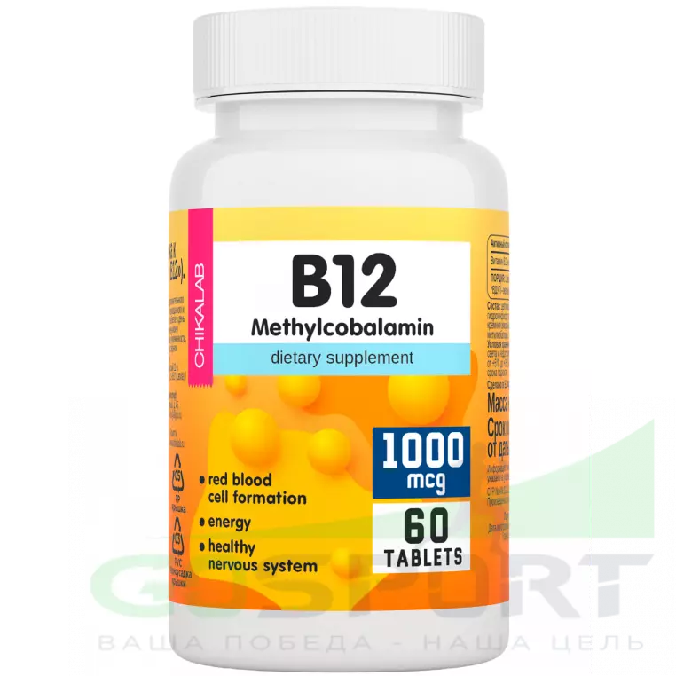 Chikalab B12 methylcobalamin 1000 mcg 60 таблеток — Поддержка нервной системы, энергия и кроветворение