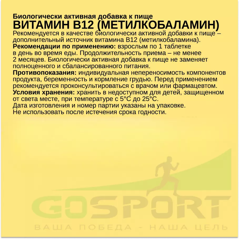 Лицензии и сертификаты B12 methylcobalamin 1000 mcg 60 таблеток