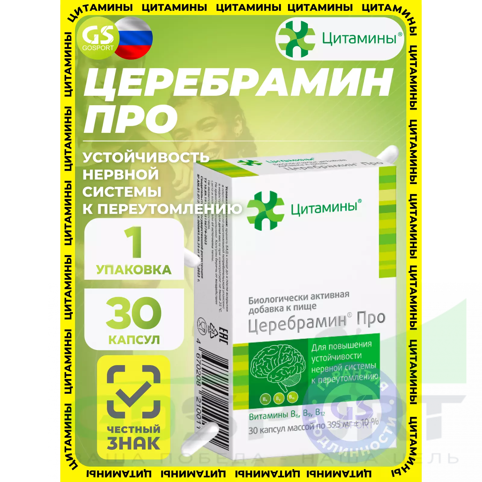 Цитамины Церебрамин Про 30 капсул — Для повышения устойчивости нервной системы к переутомлению