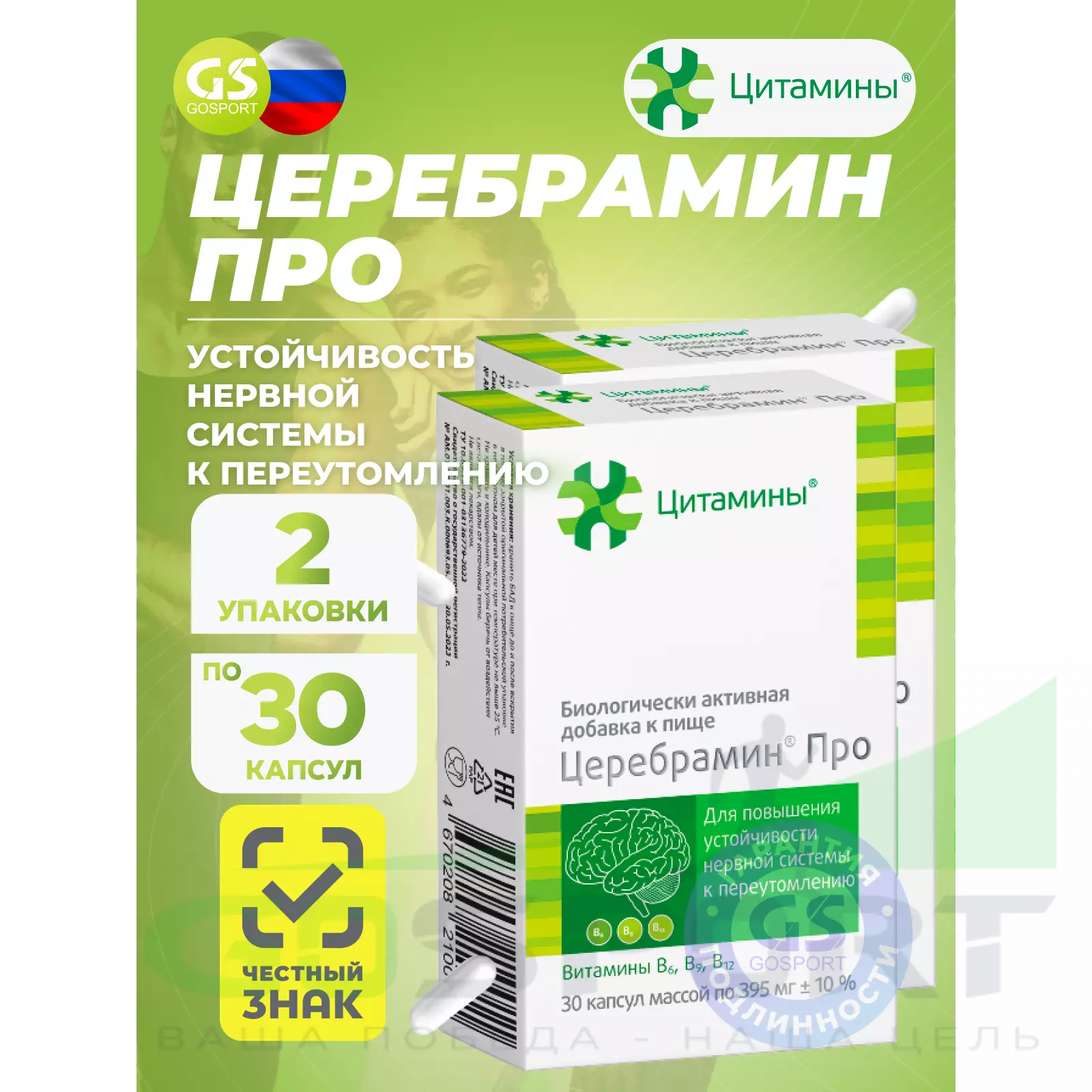 Цитамины Церебрамин Про 2 x 30 капсул — Для повышения устойчивости нервной системы к переутомлению