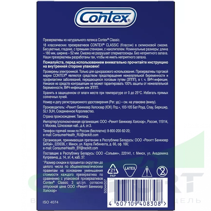 Contex Classic (классические) 18 шт — С прямыми стенками, накопителем и гелем-смазкой