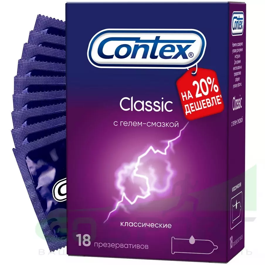 Contex Classic (Классик) - классические презервативы с прямыми стенками, с накопителем, в силиконовой смазке. Смазка не разрушает сперматозоиды.