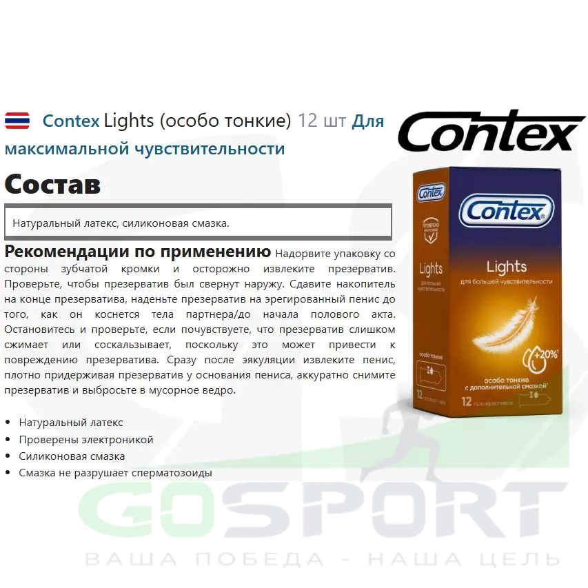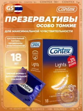Contex презерватив lights особо* тонкие в силиконовой смазке для большей чувствительности** по сравнению с презервативами Contex Classic. Особо тонкие презервативы сохранят естественность ощущений, не снижая уровня защиты. Не рекомендуется использовать ректально. Презервативы Contex производятся из натурального латекса на современном автоматизированном оборудовании и проходят многоступенчатый контроль качества (в том числе электронную проверку герметичности), что гарантирует их высокое качество и высокие потребительские свойства. Каждый презерватив обильно смазан гипоаллергенным силиконом для лёгкого и приятного проникновения. Все презервативы Contex предназначены для одноразового использования.