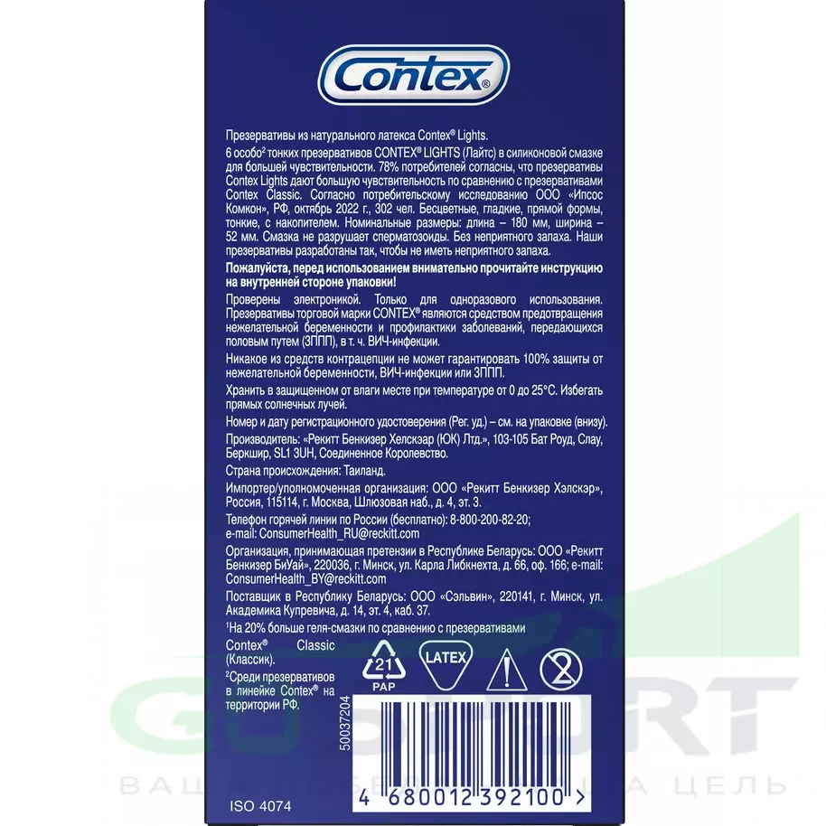 Contex презерватив lights особо* тонкие в силиконовой смазке для большей чувствительности** по сравнению с презервативами Contex Classic. Особо тонкие презервативы сохранят естественность ощущений, не снижая уровня защиты. Не рекомендуется использовать ректально. Презервативы Contex производятся из натурального латекса на современном автоматизированном оборудовании и проходят многоступенчатый контроль качества (в том числе электронную проверку герметичности), что гарантирует их высокое качество и высокие потребительские свойства. Каждый презерватив обильно смазан гипоаллергенным силиконом для лёгкого и приятного проникновения. Все презервативы Contex предназначены для одноразового использования.