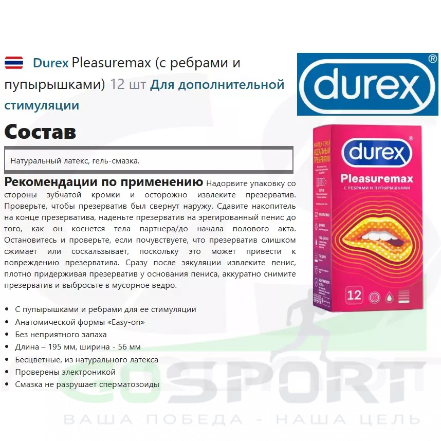 Презервативы Durex Pleasuremax с ребрами и пупырышками созданы с заботой о партнерше. Ребра и пупырышки, расположенные на поверхности презерватива, усиливают физическую стимуляцию женщины.