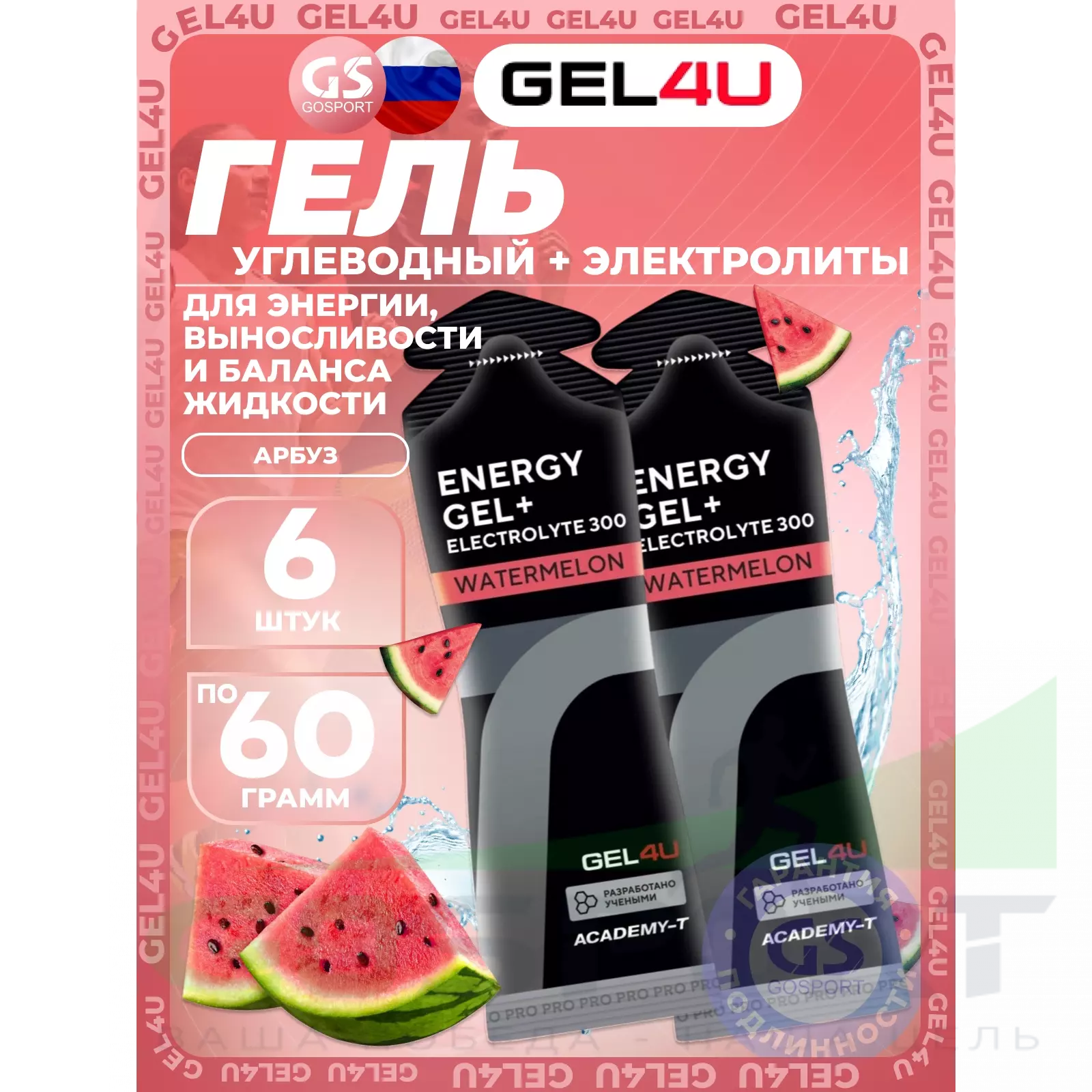 GEL4U Energy GEL + Electrolyte 300 6 x 60 г, Арбуз — Энергия, выносливость и баланс жидкости
