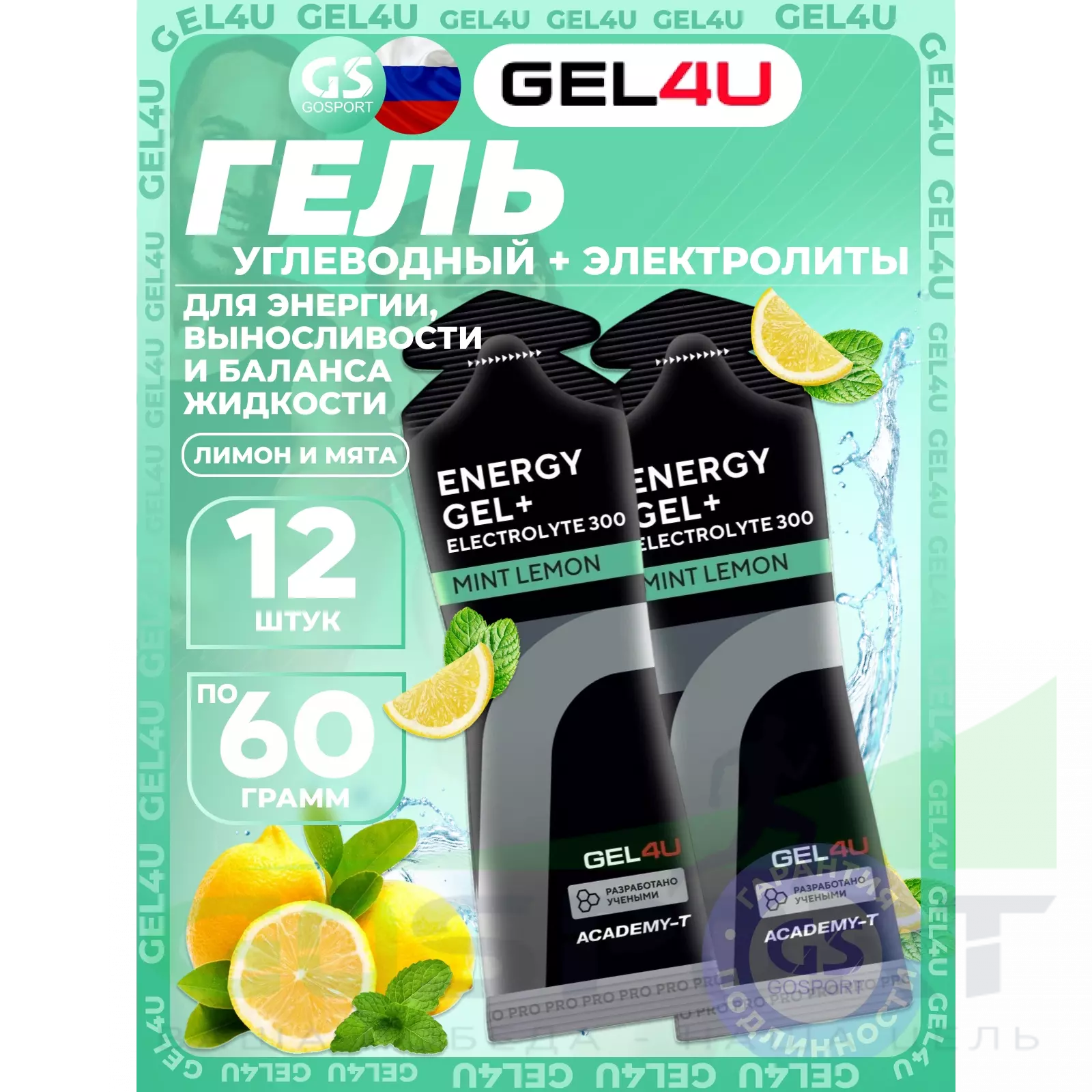 GEL4U Energy GEL + Electrolyte 300 12 x 60 г, Лимон и Мята — Энергия, выносливость и баланс жидкости
