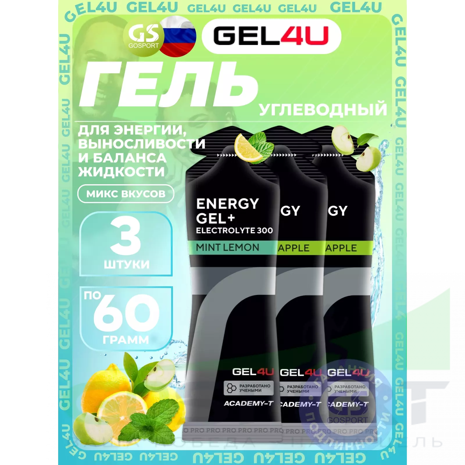 GEL4U Energy Gel MIX 3 x 60 г, Яблоко, Лимон и Мята — Энергия, выносливость и баланс жидкости
