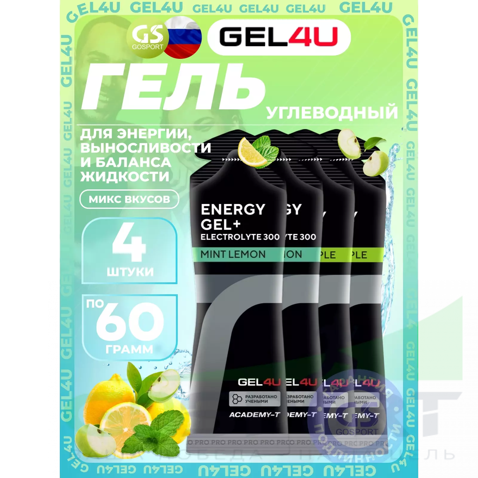 GEL4U Energy Gel MIX 4 x 60 г, Яблоко, Лимон и Мята №1 — Энергия, выносливость и баланс жидкости