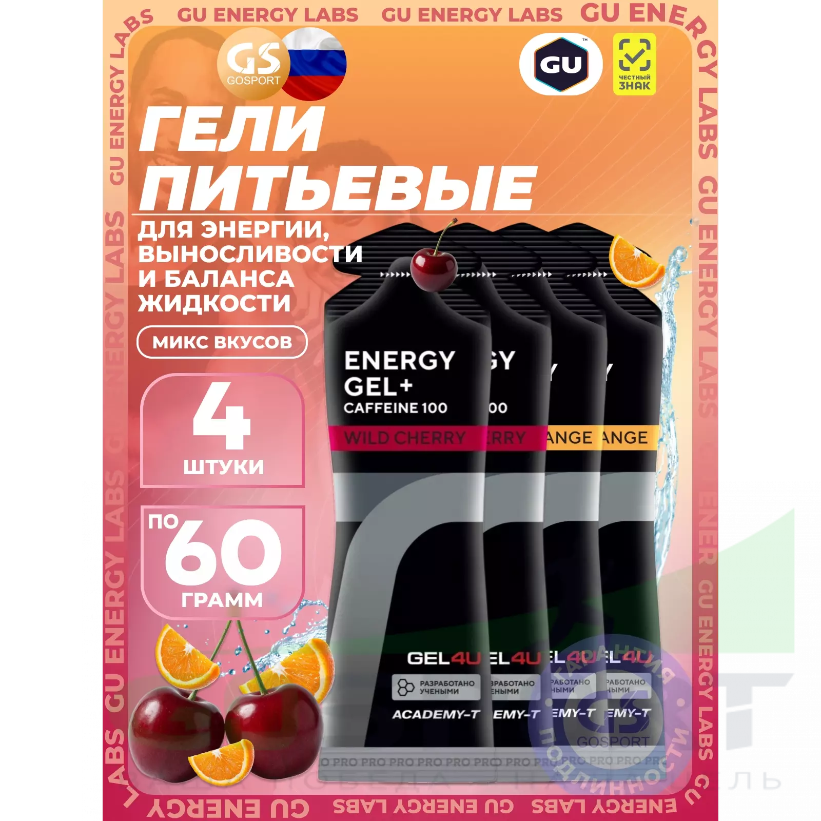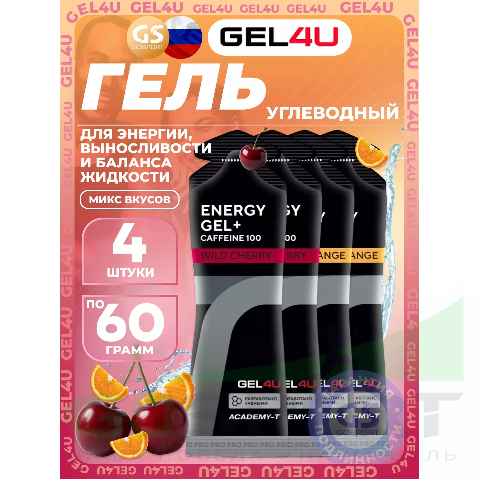 GEL4U Energy Gel MIX 4 x 60 г, Апельсин, Вишня №1 — Энергия, выносливость и баланс жидкости