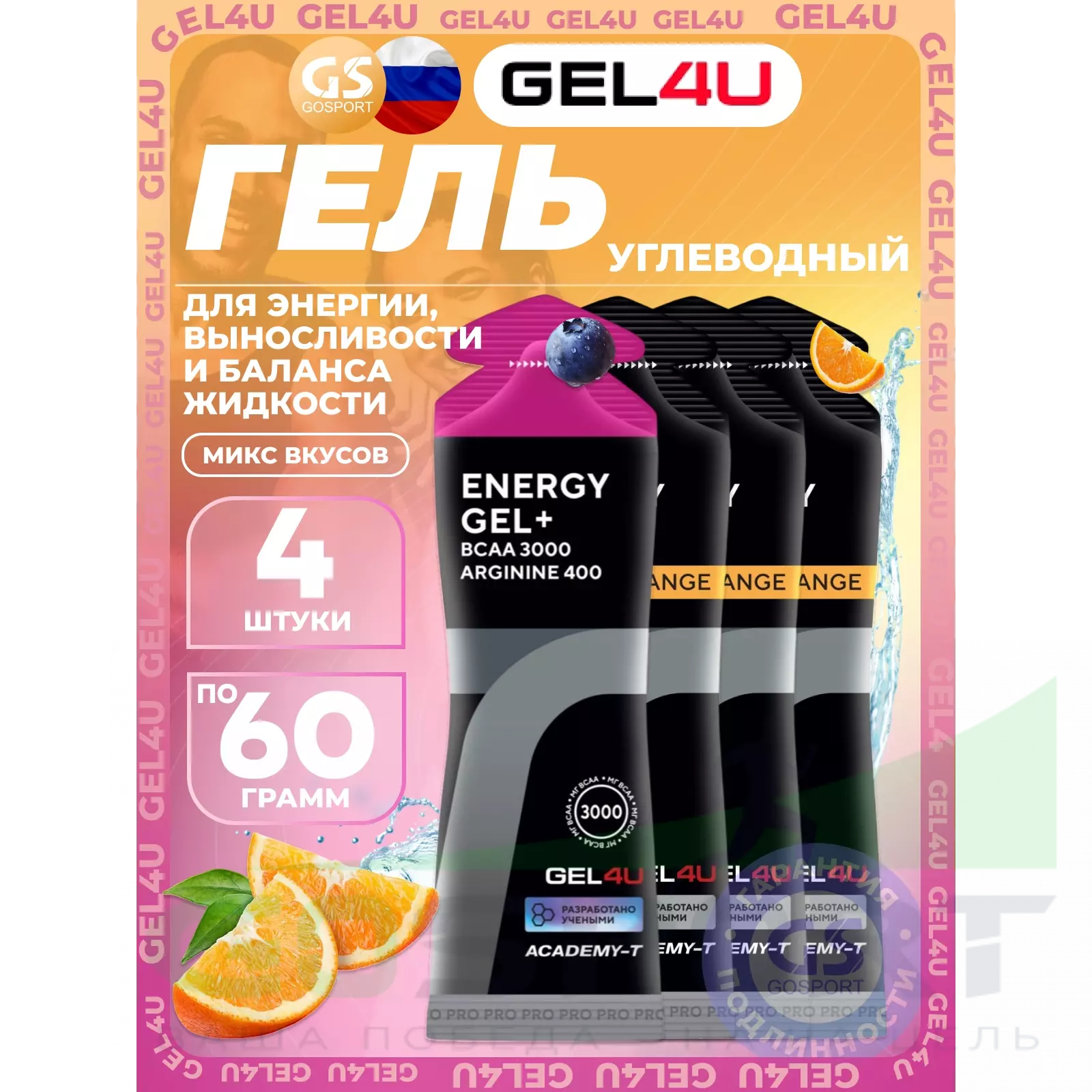 Energy Gel 4 х 60 г, Лесные ягоды, апельсин