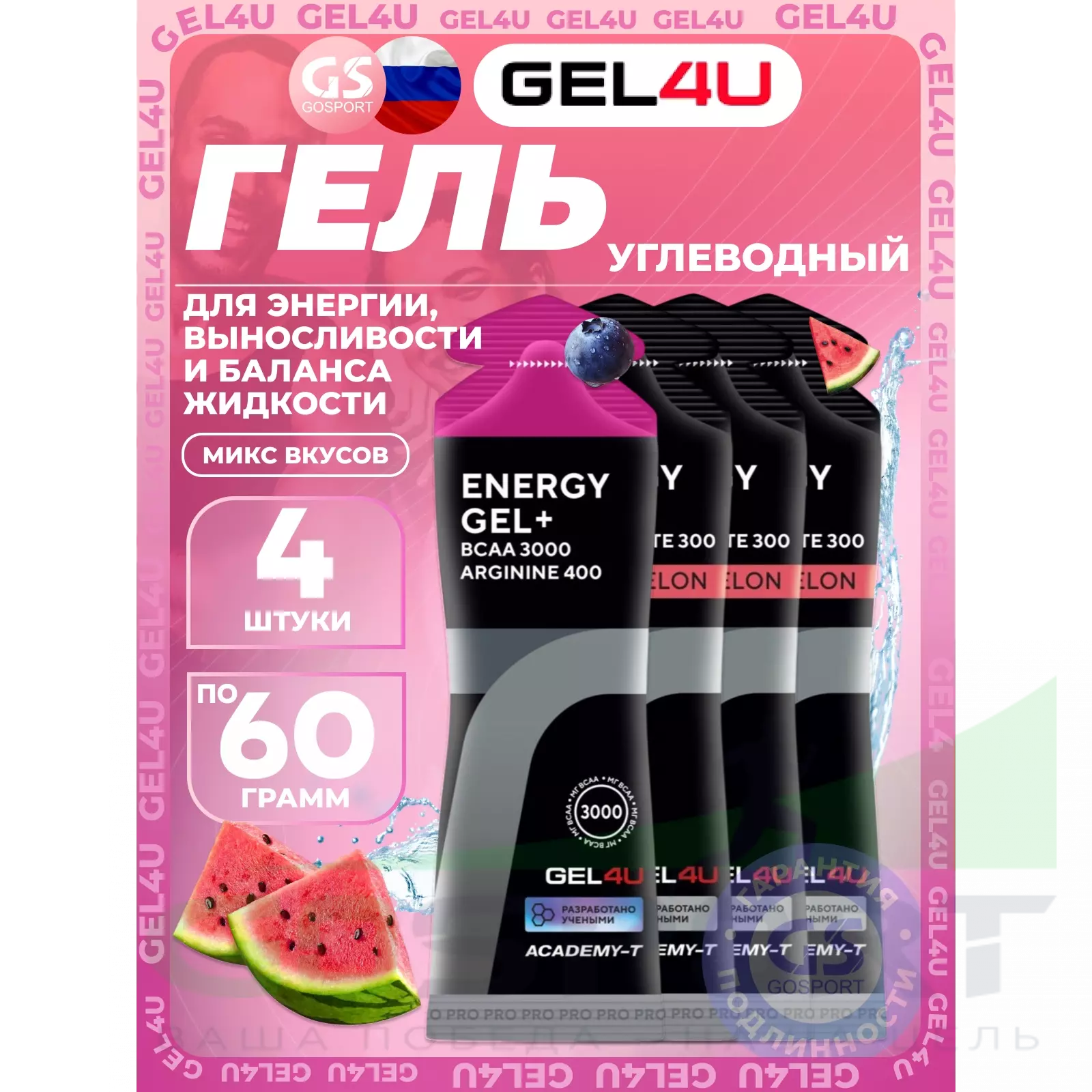 GEL4U Energy Gel+electrolyte 300 4 х 60 г, Лесные ягоды, арбуз — Энергия, выносливость и баланс жидкости