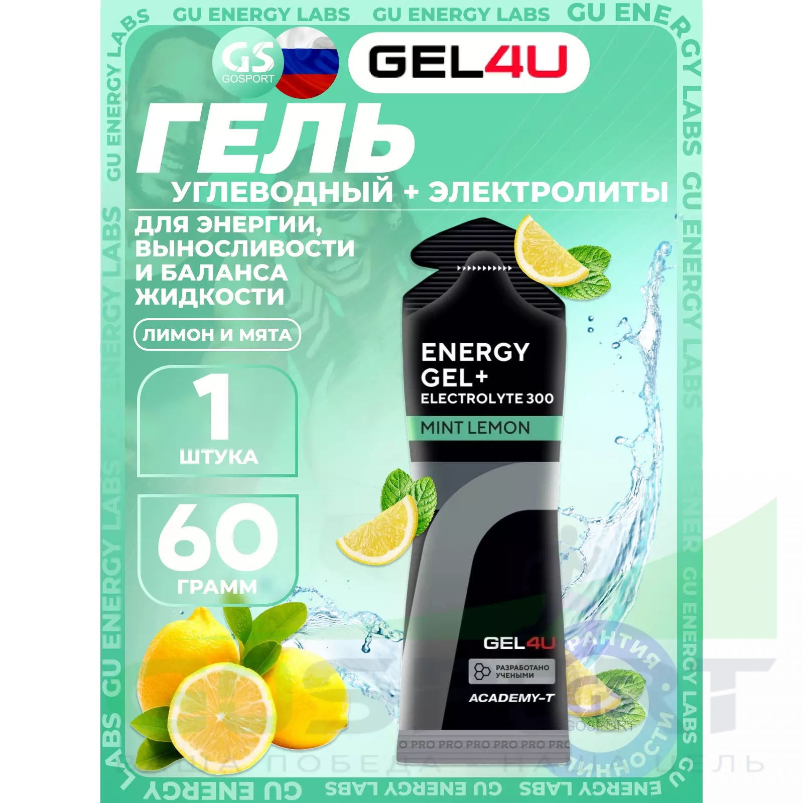 GEL4U Energy GEL + Electrolyte 300 60 г, Лимон и Мята — Энергия, выносливость и баланс жидкости