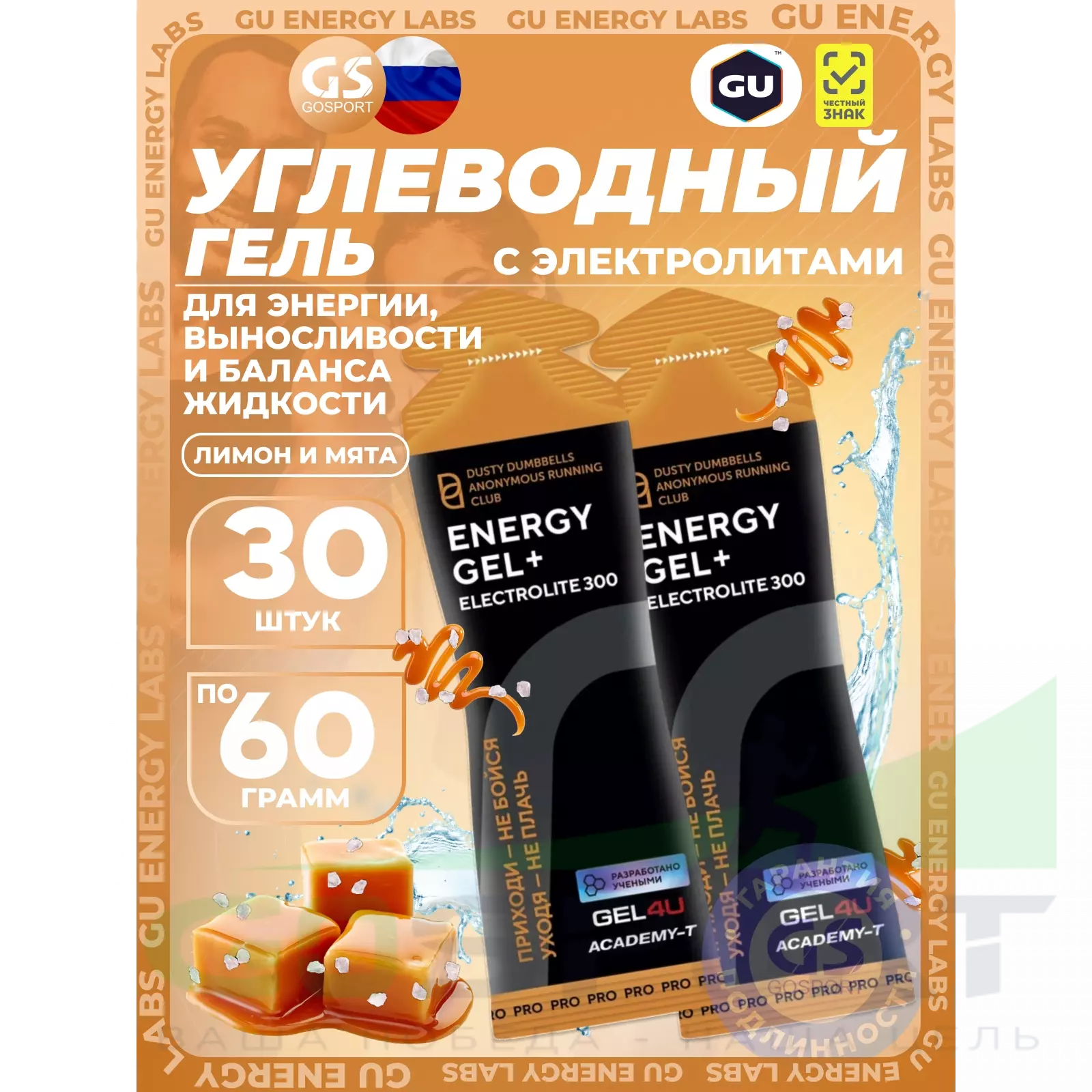 GEL4U Energy GEL + Electrolyte 300 30 x 60 г, Соленая карамель — Энергия, выносливость и баланс жидкости