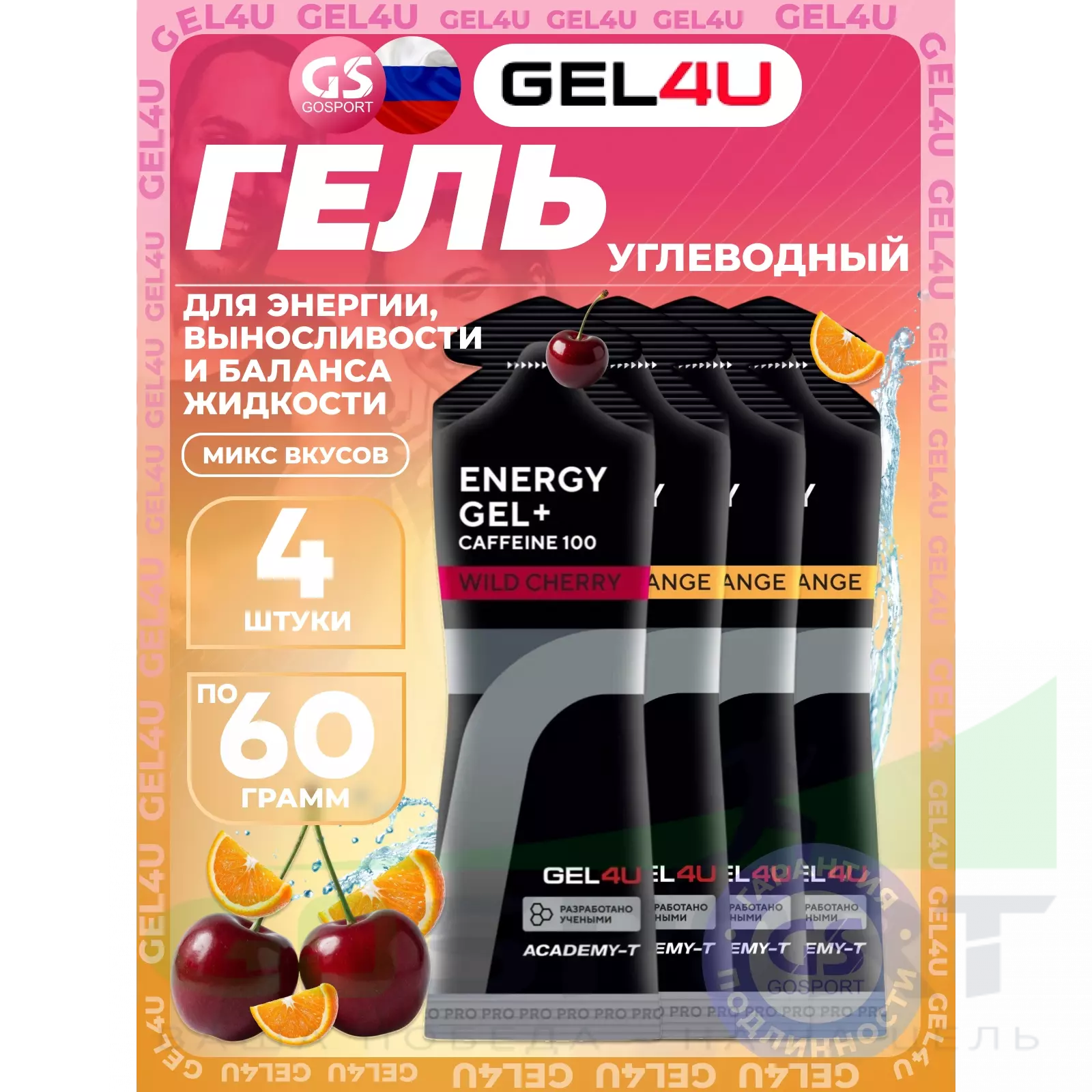 GEL4U Energy Gel MIX 4 x 60 г, Апельсин, Вишня №2 — Энергия, выносливость и баланс жидкости