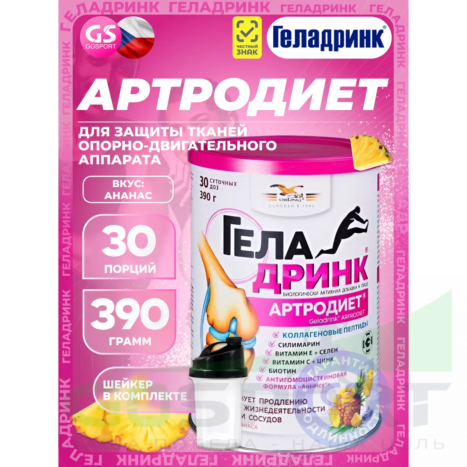 ГЕЛАДРИНК Артродиет (Geladrink Artrodiet) + Шейкер 390 г + шейкер, Ананас — Для суставов и опорно-двигательного аппарата