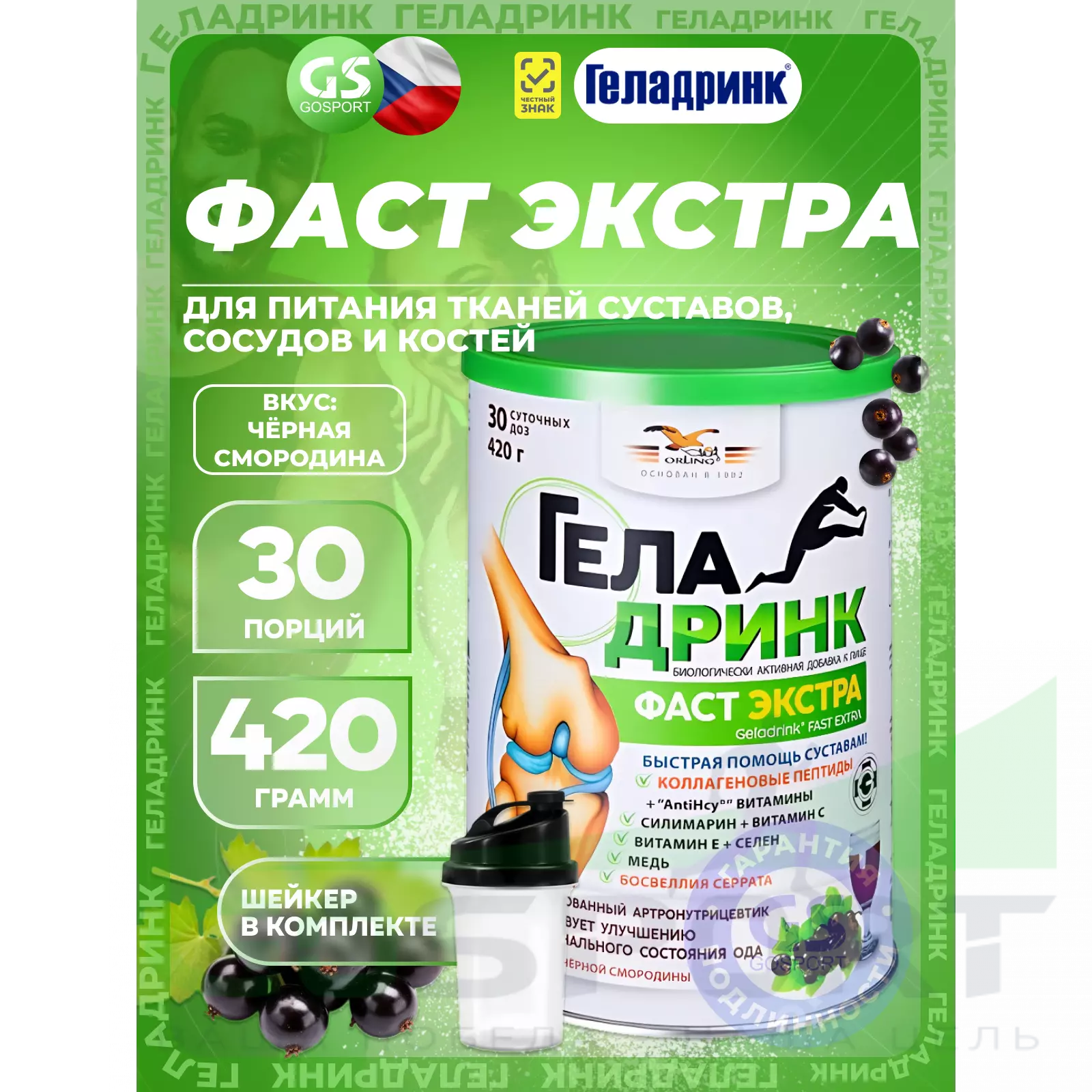 ГЕЛАДРИНК Фаст Экстра 420 г + шейкер, Черная смородина — Для питания тканей суставов, сосудов и костей